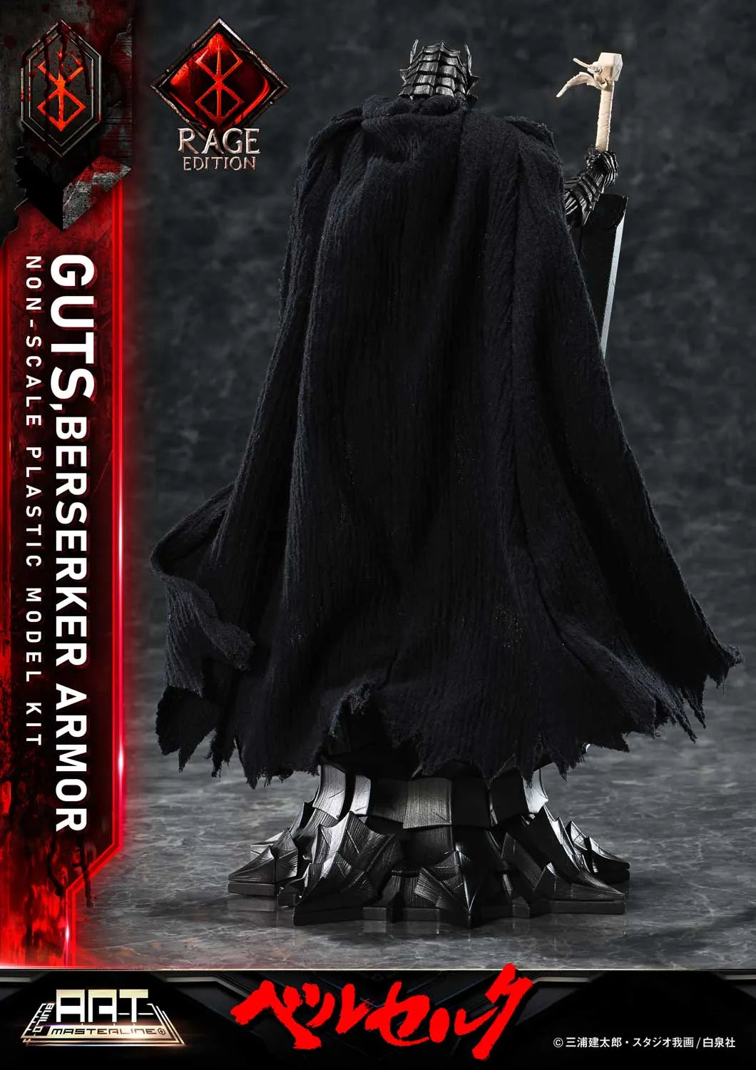 A Prime 1 Studio apresenta com orgulho a BUILD ART MASTERLINE—uma linha de kits de modelos de plástico que destila a essência de nossa habilidade em esculturas em uma forma compacta. O primeiro lançamento da série é “Guts Berserker Armor ‘Rage’” do mangá Berserk, fielmente recriado com base em nossa estátua de polystone de 121 cm de altura. Desde a massa imponente do Dragonslayer até a presença ameaçadora da Armadura do Berserker que envolve seu corpo, cada detalhe escultural—supervisionado pelo próprio Kentarou Miura—foi meticulosamente reproduzido neste kit de modelo.