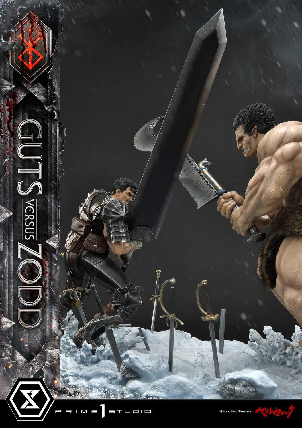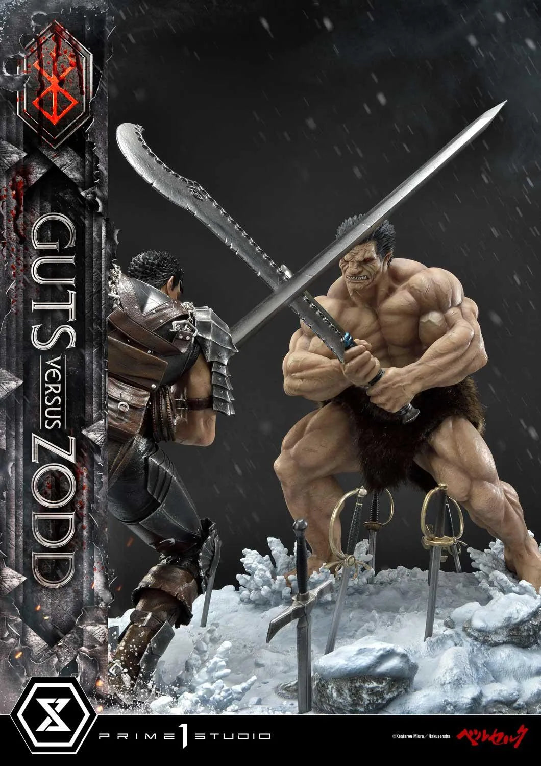Fazendo o nosso melhor para homenagear o lendário criador de Berserk, Kentarou Miura, A Prime 1 Studio recriou fielmente um confronto épico entre o Espadachim Bestial e o Espadachim Negro... congelado no tempo!