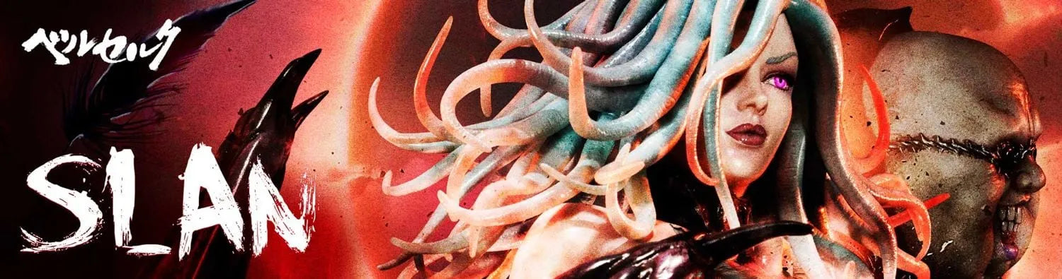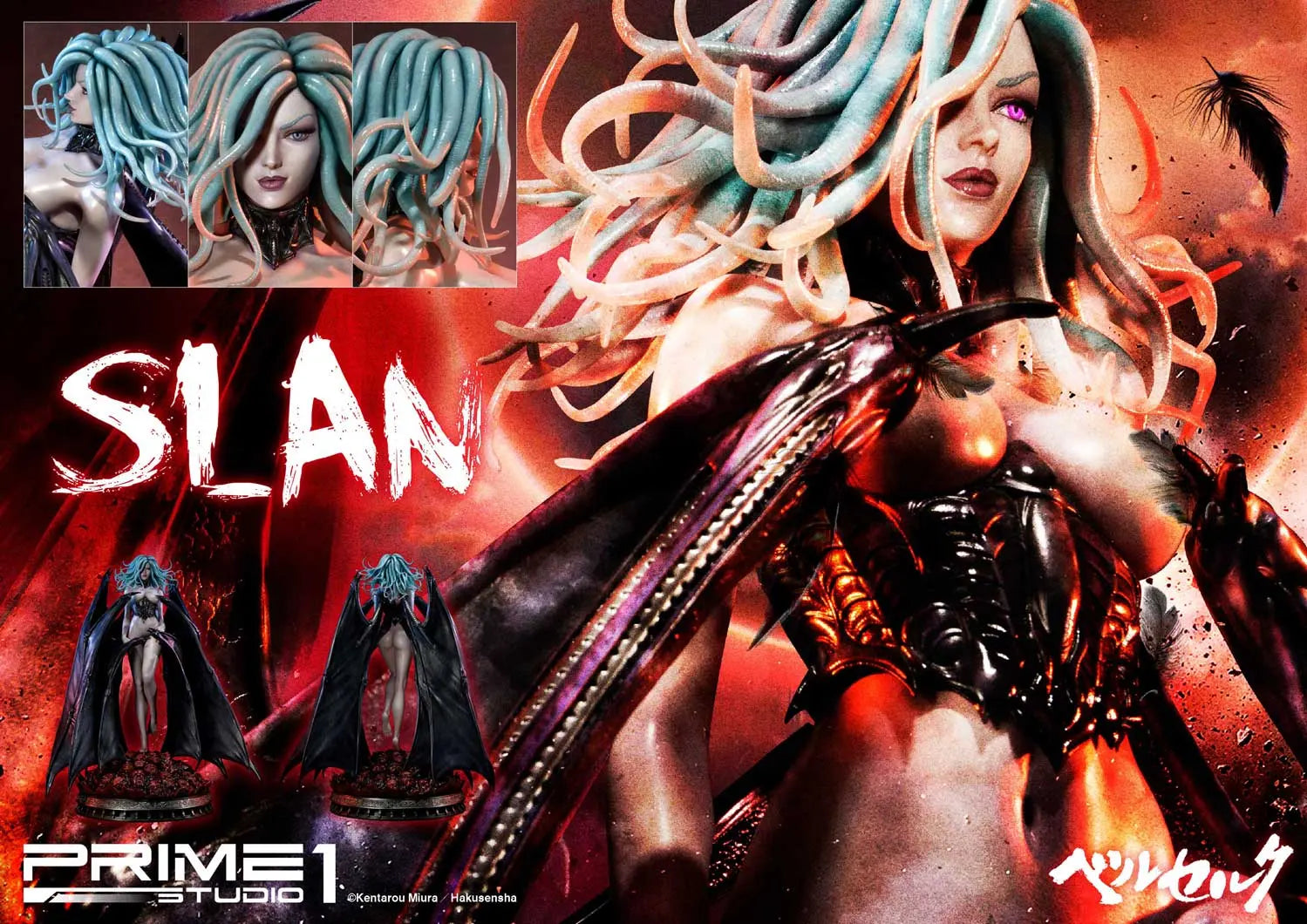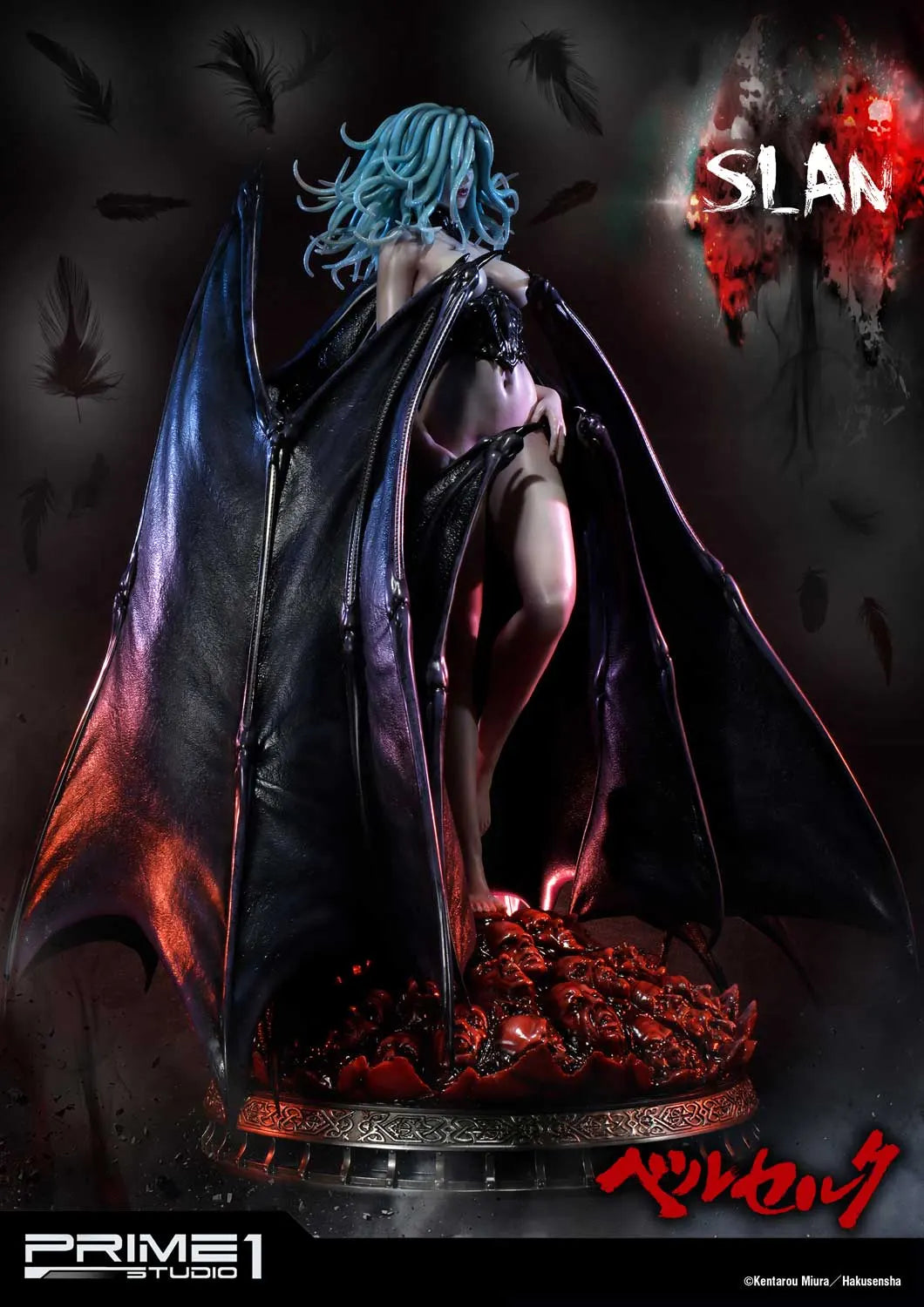 A Prime 1 Studio tem o orgulho de apresentar a Estátua em Escala 1/4 UPMBR-07: Slan de Berserk (Mangá). Slan é uma das principais antagonistas da série Berserk e membro da Mão de Deus. Ela assume a forma de uma súcubo com asas negras de couro e cabelo semelhante a cipós. Ela é uma sádica que prospera na crueldade e no efeito que isso tem sobre aqueles que a observam. Ela parece ter uma fascinação por Guts quando o confronta, demonstrando também interesse em sua incrível força e capacidade de sobrevivência quando o Conde convocou a Mão de Deus.