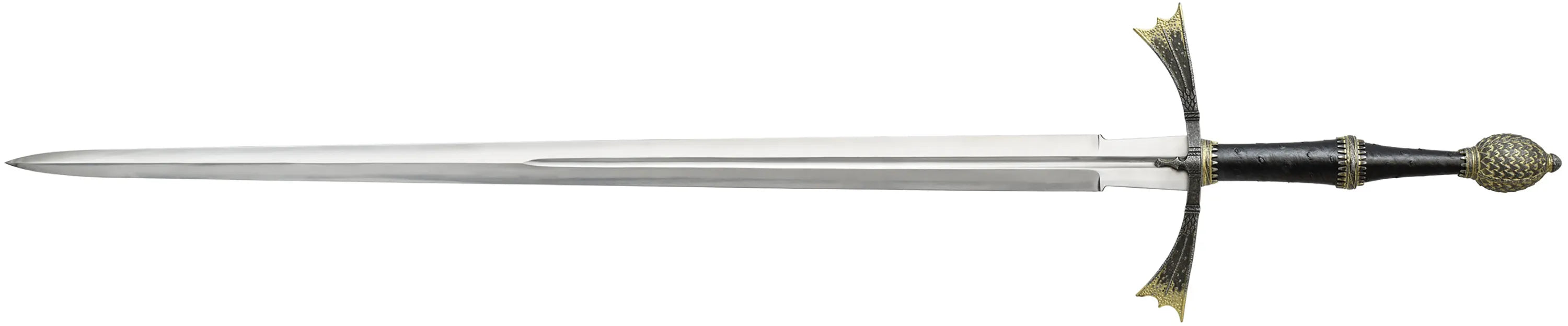 é oficialmente licenciada da série de sucesso da HBO® House of the Dragon ®. É feita de aço inoxidável e inclui um certificado de autenticidade e uma placa de exibição. A Coleção House of the Dragon® é uma série de armas e armaduras colecionáveis meticulosamente recriadas a partir dos adereços reais usados no épico de fantasia de sucesso da HBO®, House of the Dragon®. Os colecionáveis oficialmente licenciados são feitos com materiais da mais alta qualidade e foram elaborados com atenção especial para reproduzir os detalhes autênticos encontrados nos adereços. Cada espada é serializada e vem com um suporte de parede e um certificado de autenticidade. Adicione esta espada à sua coleção de Game of Thrones hoje!Altura: 44" (112 cm)