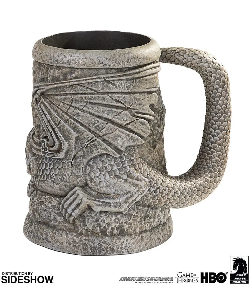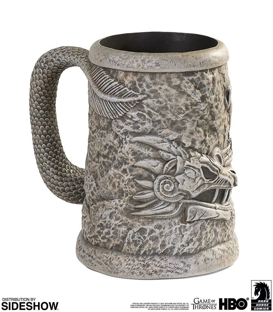 A sede imensa de um dragão é quase impossível de saciar. Quando você sente essa necessidade rugindo dentro de você, nada faz o trabalho como a caneca Dragonstone. Com o icônico relevo dracônico do Castelo Dragonstone, esta caneca parece esculpida em pedra com o toque mais refinado. Sinta a textura das asas e da cauda do dragão em tal detalhe que você pode até esquecer da sua deliciosa bebida!