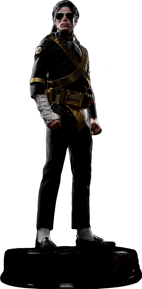A versão com traje preto presta homenagem à sua pose característica da abertura da Dangerous Tour de 1992 em Munique.