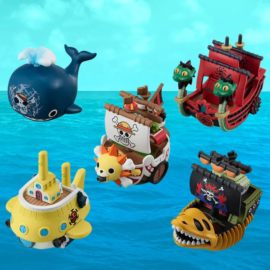 Os primeiros a se juntar à série revitalizada são os icônicos navios piratas da série de anime ONE PIECE, trazidos à vida como adoráveis mascotes do tamanho da palma da mão com um movimento balançante encantador.