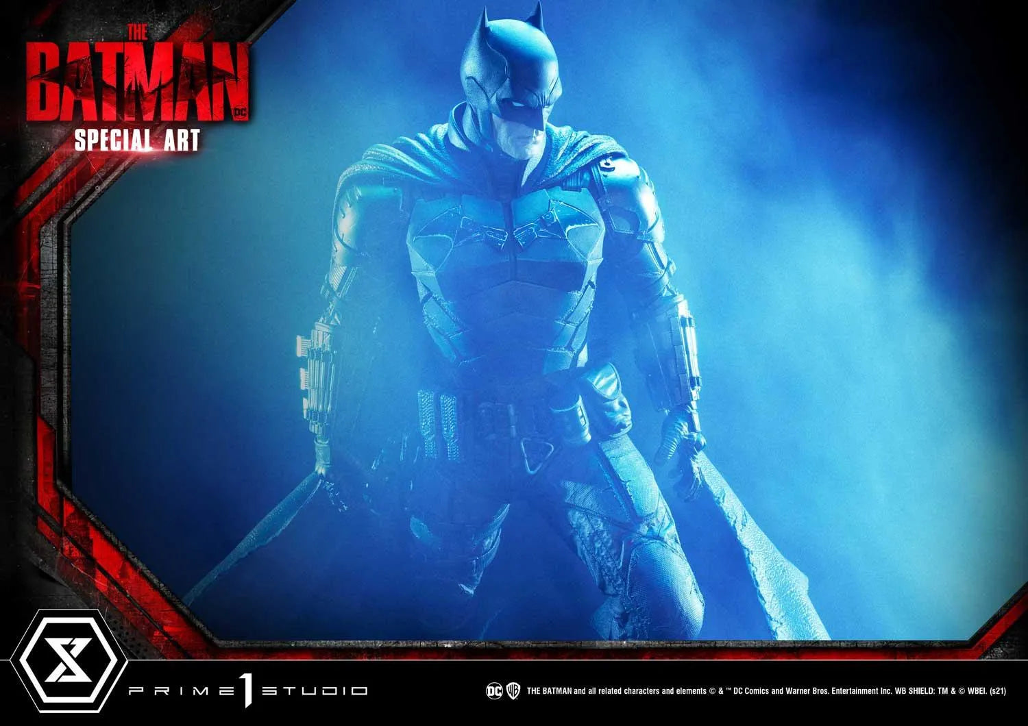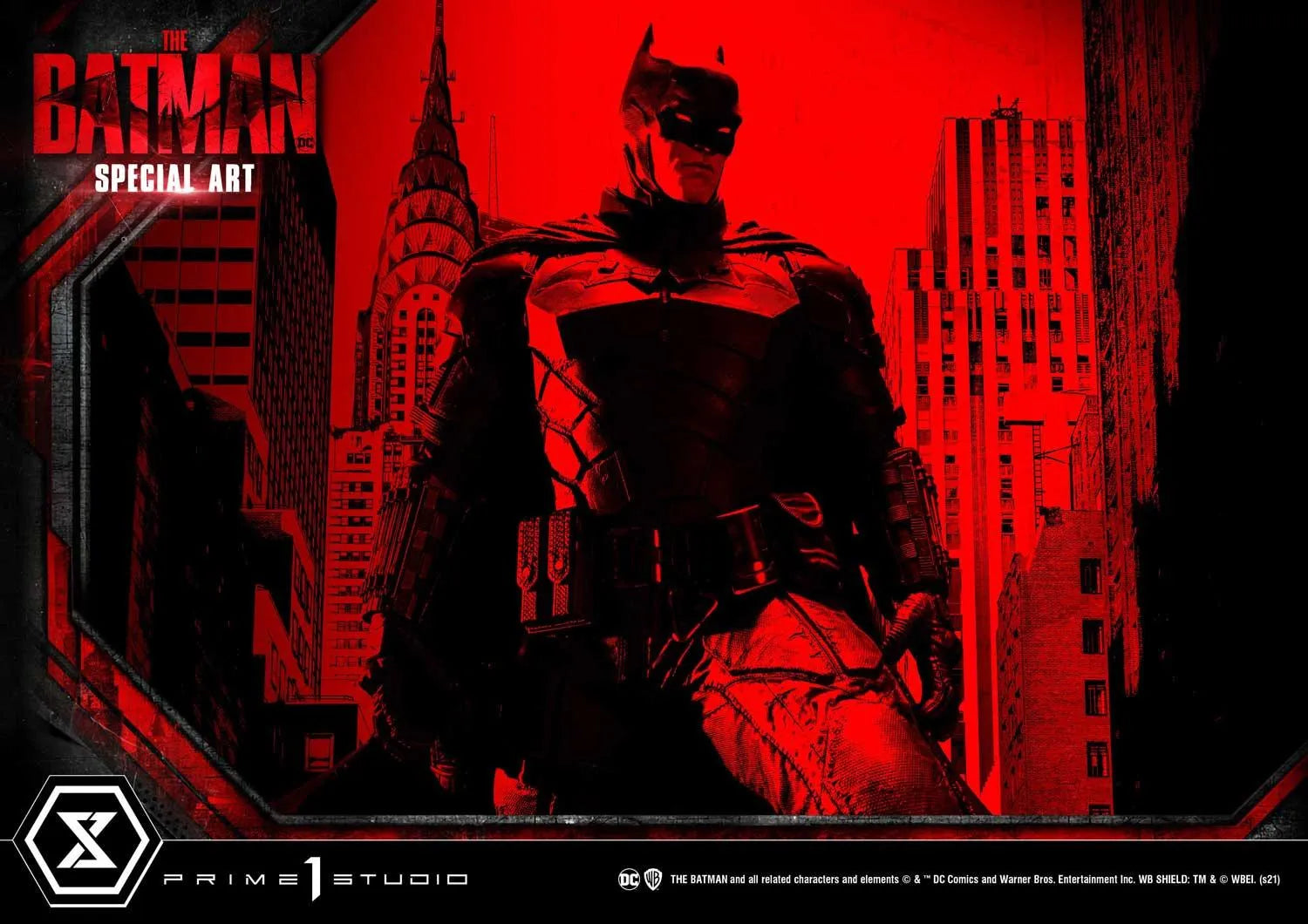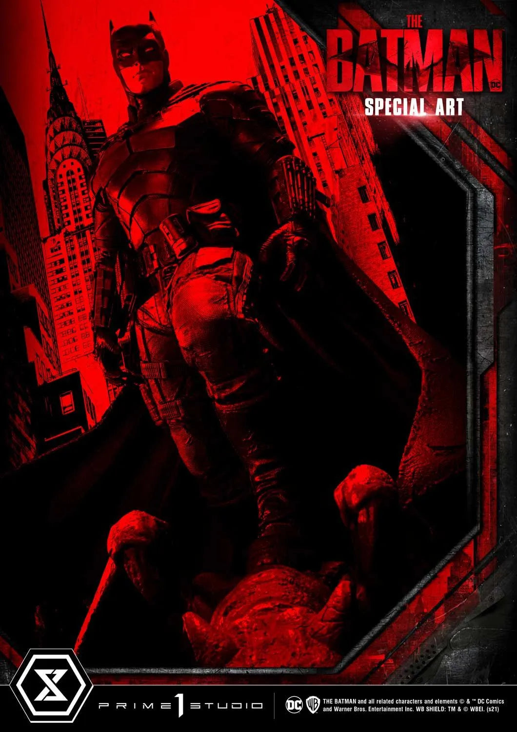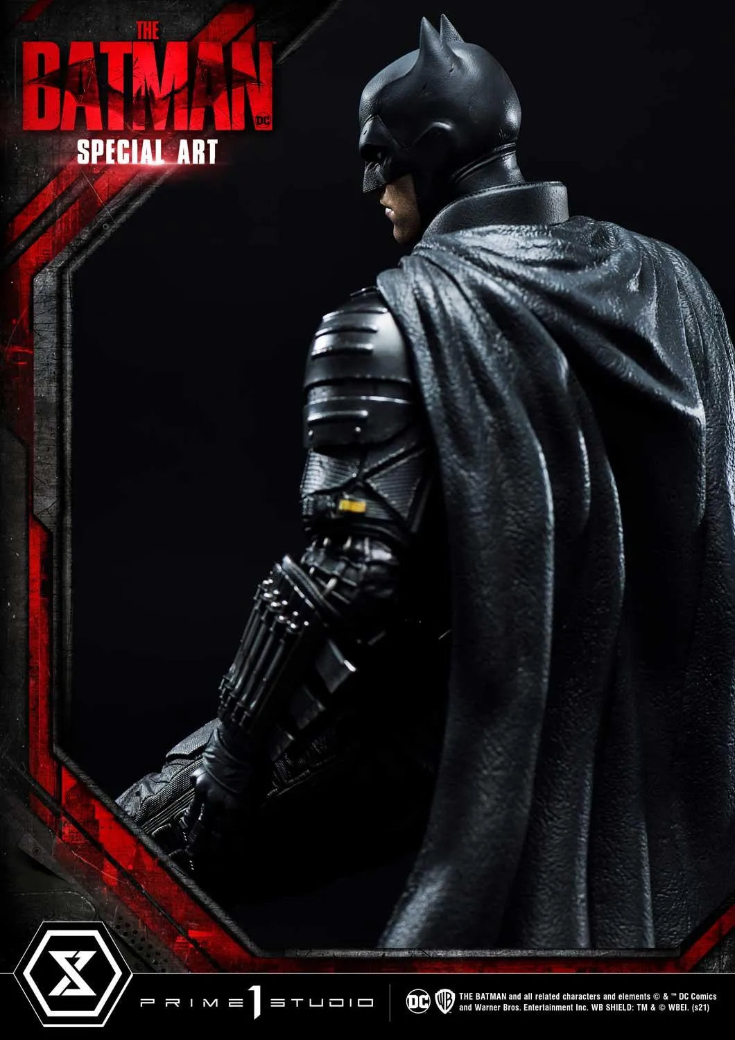 Com quase 90 centímetros de altura, A Prime 1 Studioa Estátua Edição Especial de Arte em Escala 1:3 de THE BATMAN da linha Museum Masterline é baseada na impressionante ilustração de Jim Lee para o evento DC Fandome de 2020. A Prime 1 Studio criou esta obra de arte para aproveitar todas as oportunidades de mostrar este novo Batman e destacar o quão incrível é este novo design estético.