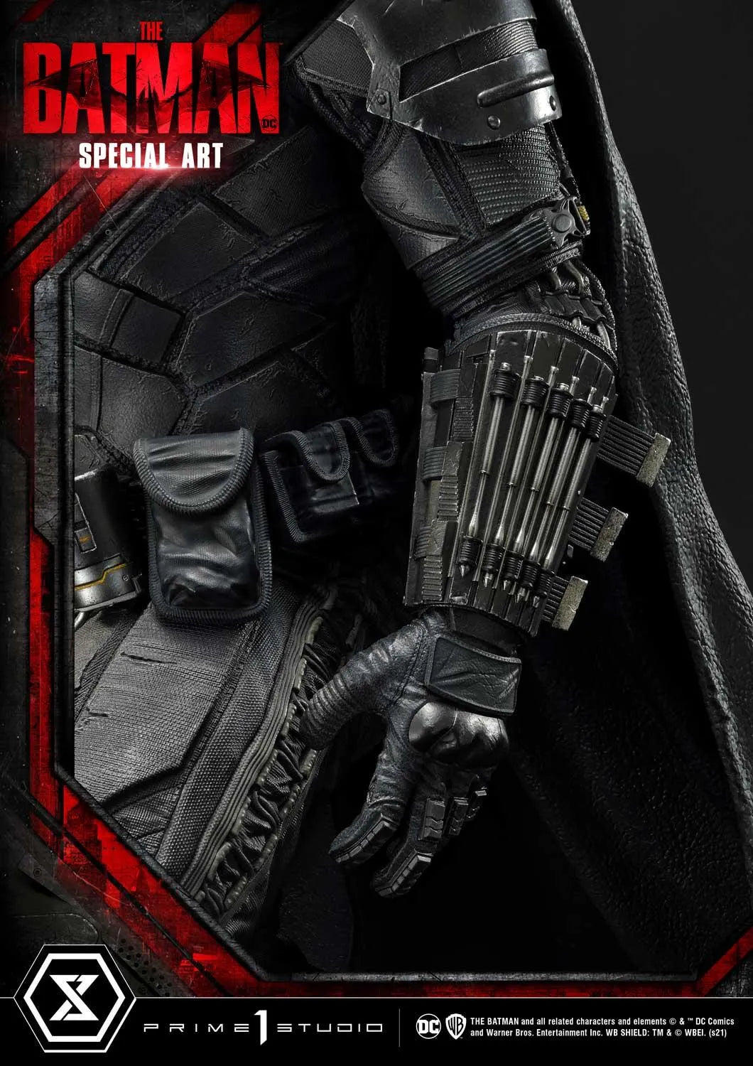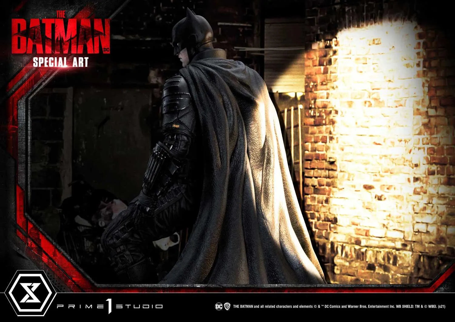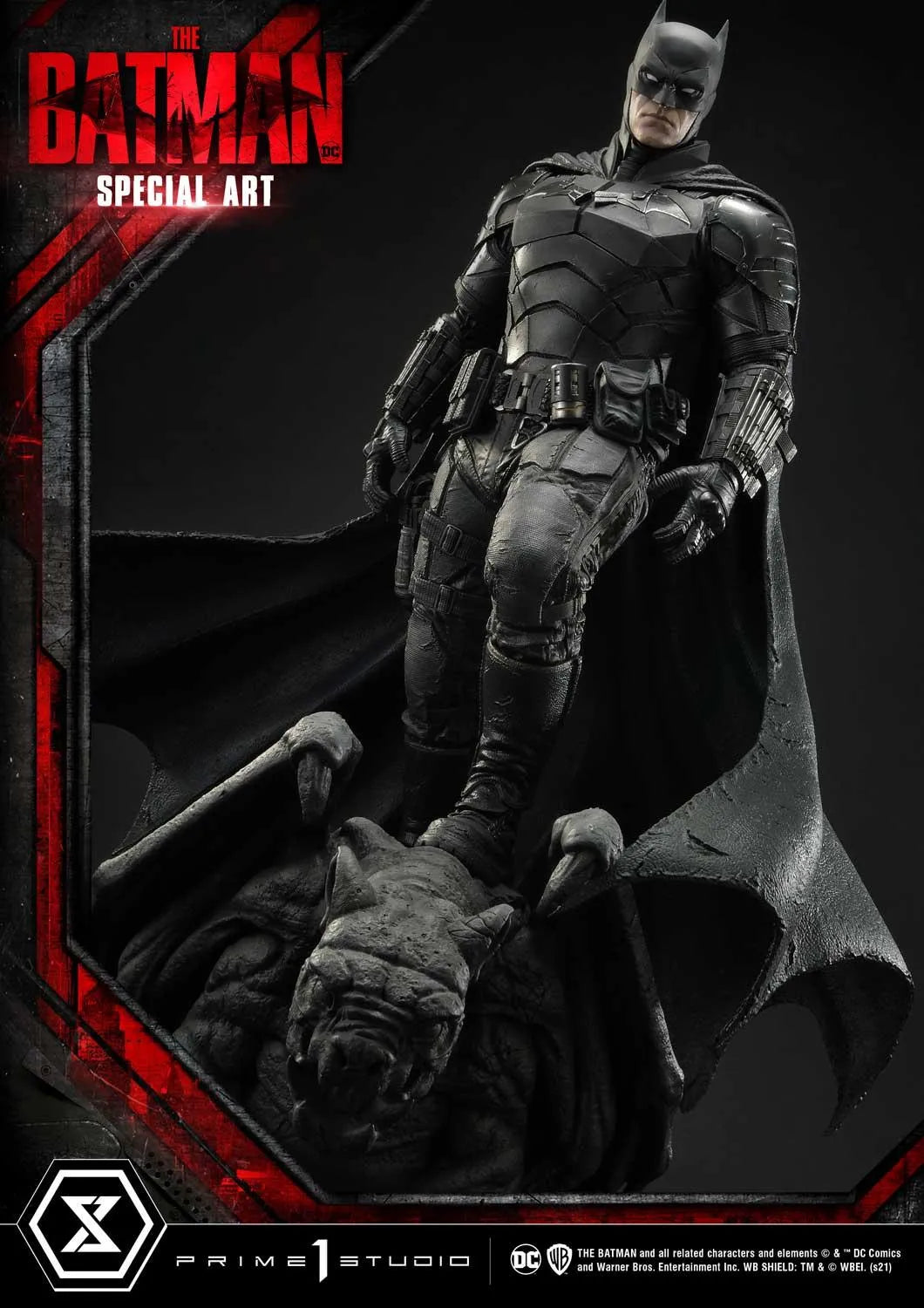Com quase 90 centímetros de altura, A Prime 1 Studioa Estátua Edição Especial de Arte em Escala 1:3 de THE BATMAN da linha Museum Masterline é baseada na impressionante ilustração de Jim Lee para o evento DC Fandome de 2020. A Prime 1 Studio criou esta obra de arte para aproveitar todas as oportunidades de mostrar este novo Batman e destacar o quão incrível é este novo design estético.
