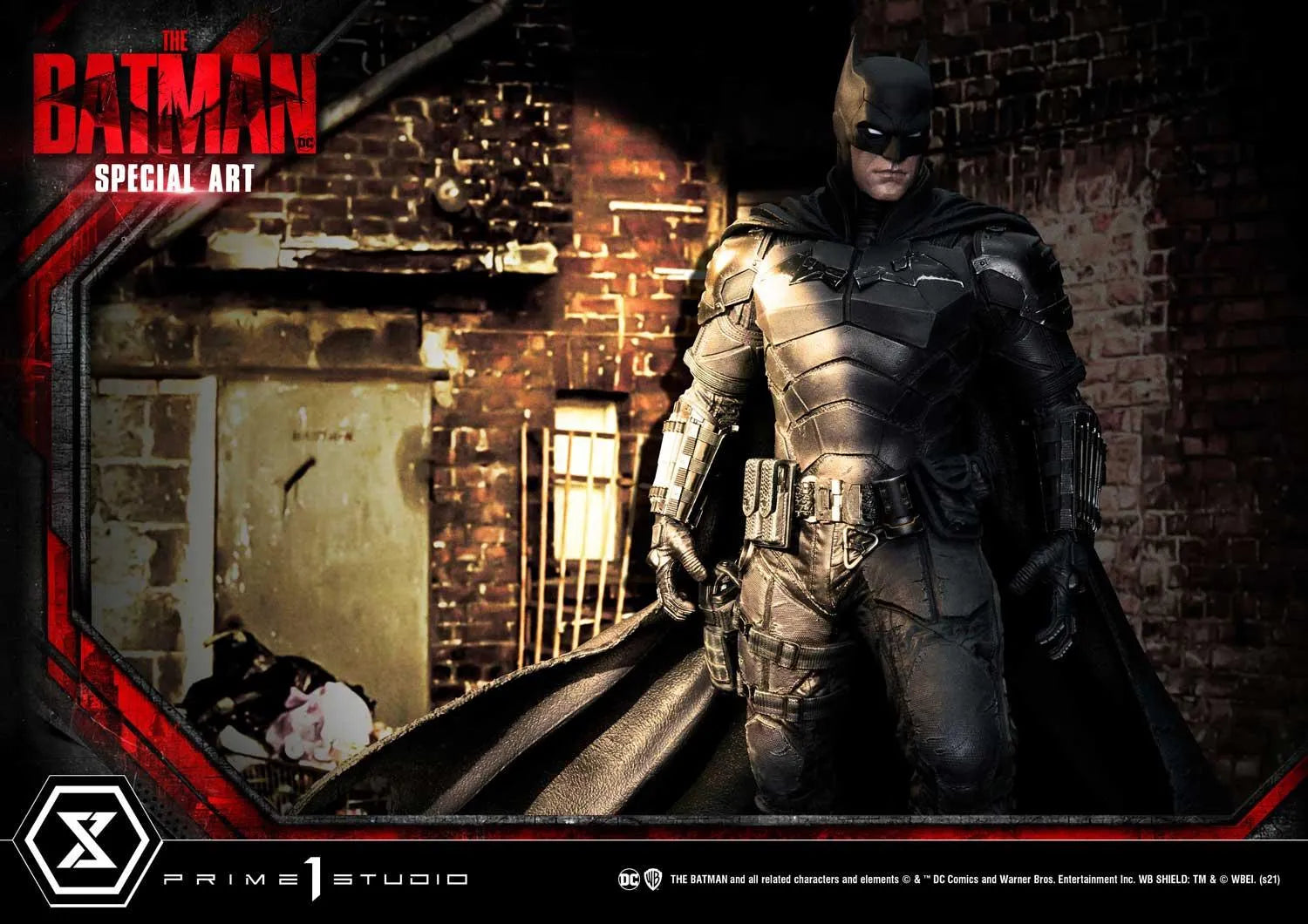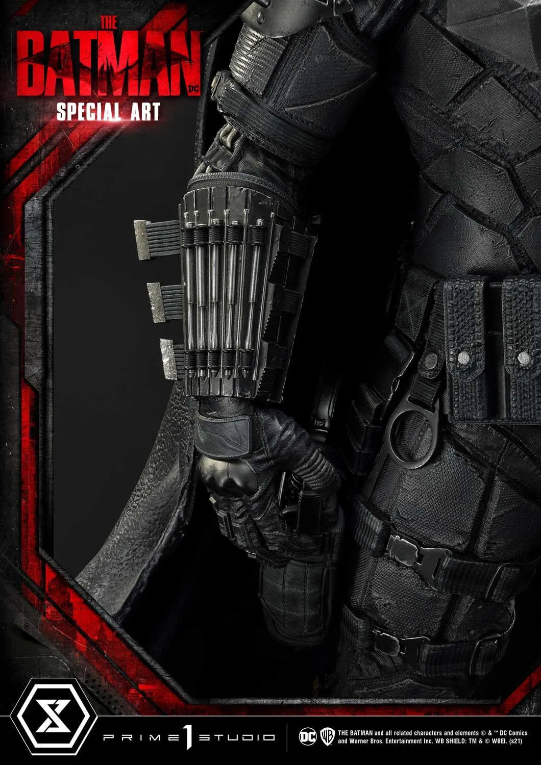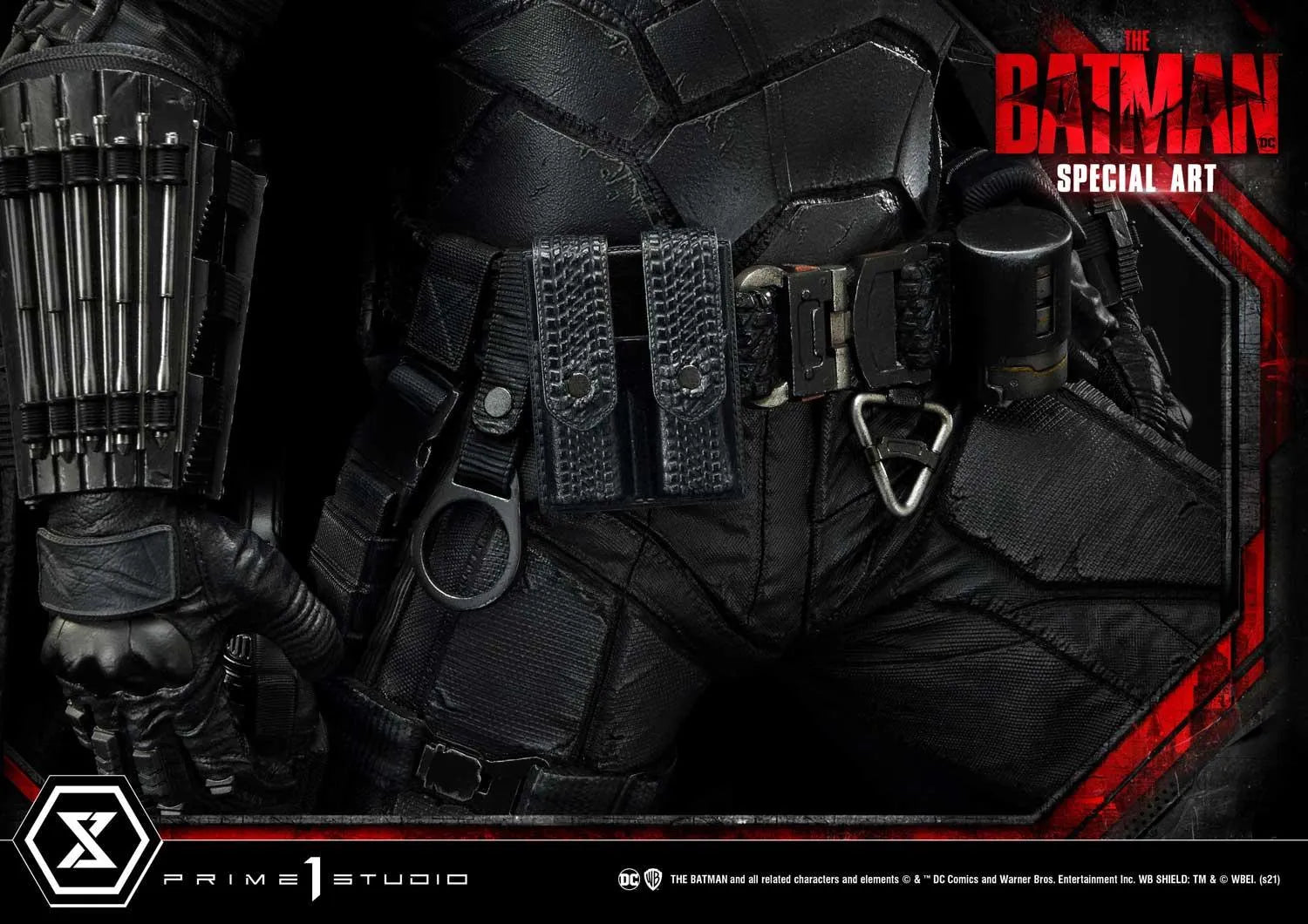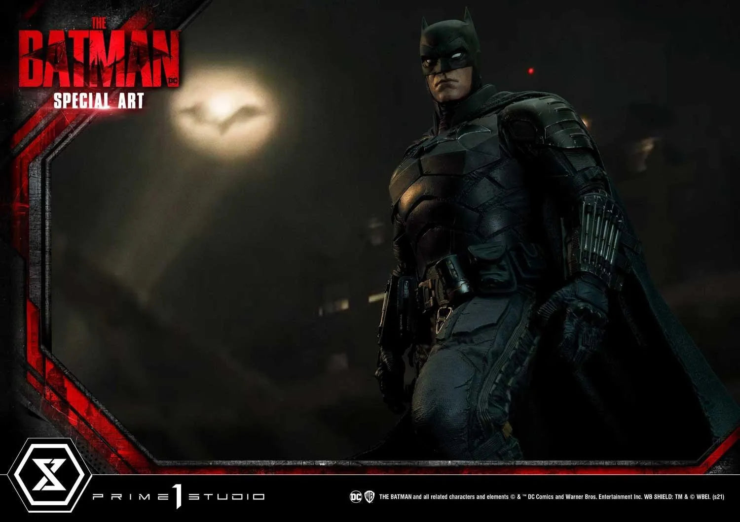 Com quase 90 centímetros de altura, A Prime 1 Studioa Estátua Edição Especial de Arte em Escala 1:3 de THE BATMAN da linha Museum Masterline é baseada na impressionante ilustração de Jim Lee para o evento DC Fandome de 2020. A Prime 1 Studio criou esta obra de arte para aproveitar todas as oportunidades de mostrar este novo Batman e destacar o quão incrível é este novo design estético.