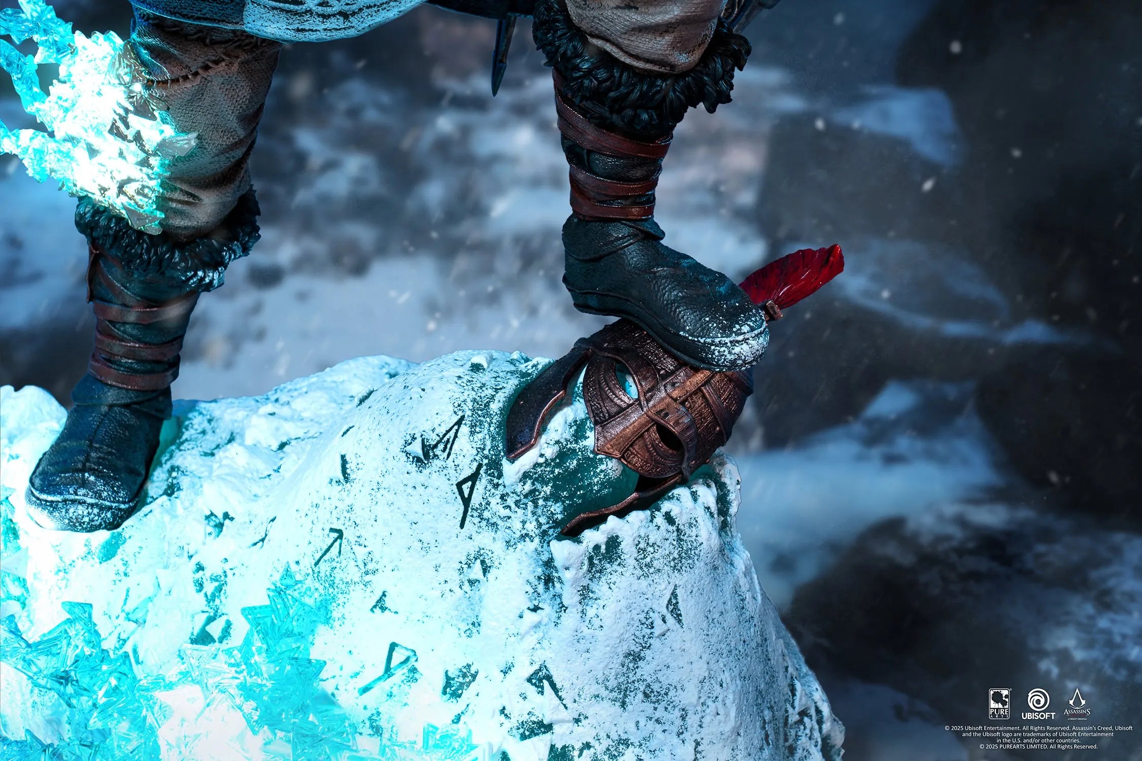 A icônica à PureArts Estátua em Escala 1:4 deAnimus Eivor agora em Escala 1:8! O feroz invasor viking e protagonista de Assassin’s Creed Valhalla, Eivor, está sedento por batalha com a cabeça decepada de seu inimigo aos seus pés sobre uma base gelada.