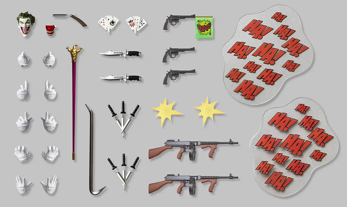 As cores vivas e a pintura com rugas profundas expressam de forma realista a loucura do Coringa. Além dos acessórios convencionais, a Ver.1.5 adiciona muitos itens que estimulam o espírito travesso do Coringa!