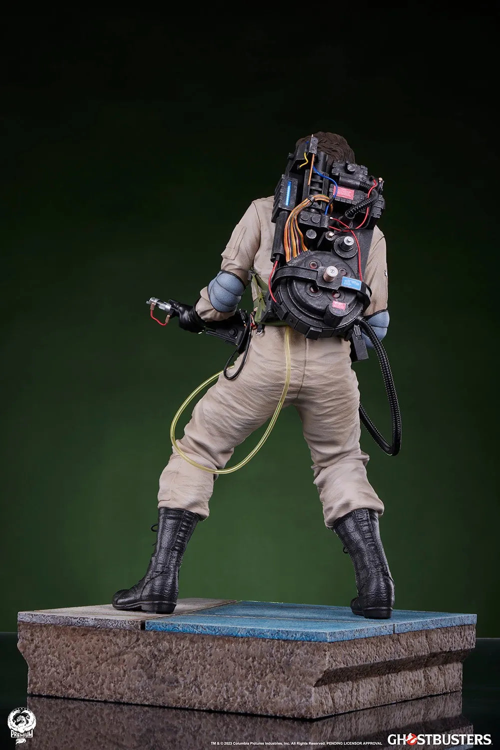 Com 48 cm de altura e uma base ambiental, o visual característico do Egon é recriado em detalhes de outro mundo nesta peça totalmente esculpida. Seus óculos redondos distintos e expressão concentrada capturam a inteligência resoluta e a coragem do cientista.