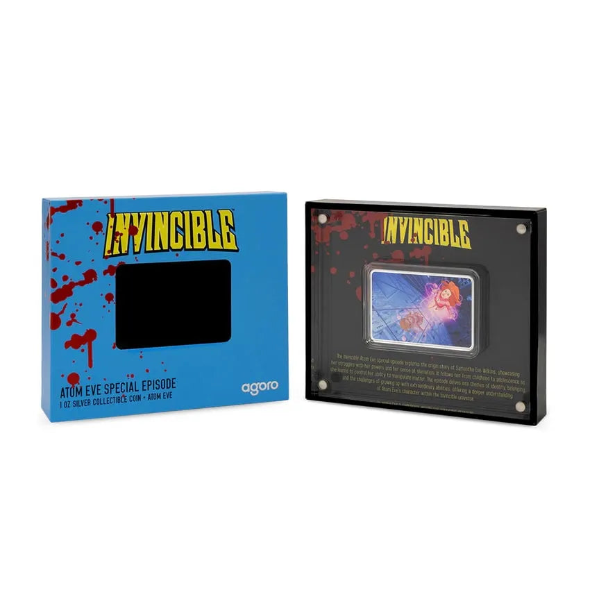 Testemunhe a ascensão de Atom Eve com o terceiro e último colecionável Invincible da Agoro. 1 onça de prata pura 999, homenageando o episódio especial que a acompanha desde a infância até a adolescência, enquanto aprende a controlar suas habilidades extraordinárias.