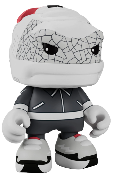 Shudog "Cement"- Inspirado nos tênis mais icônicos do jogo e mais resistente que prego em caixão, forjado pela mão esquerda de Lúcifer. Shudog tem 20 centímetros de vinil impecável, nunca amassado, e vem com uma atitude terrível e um certificado de autenticidade.