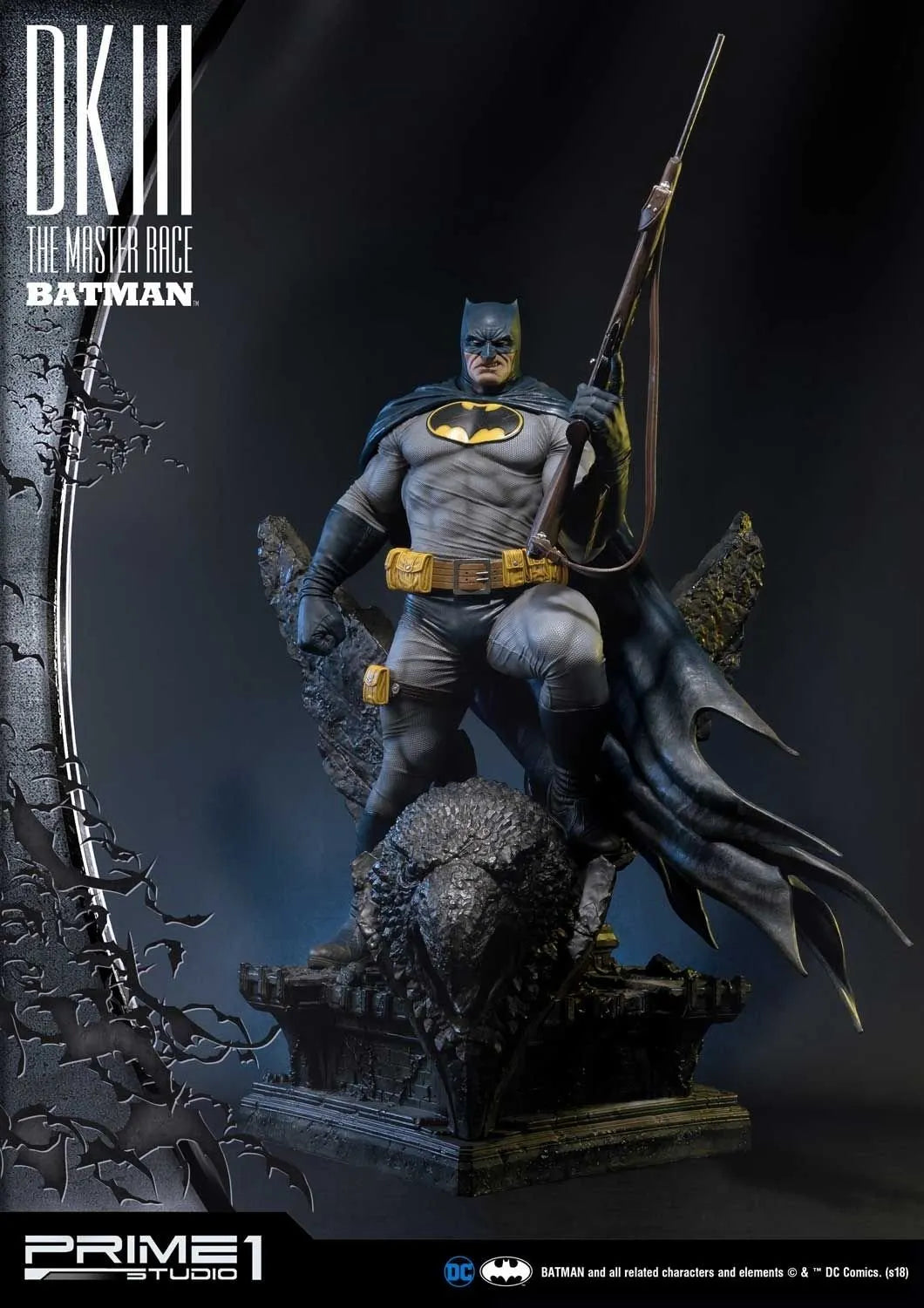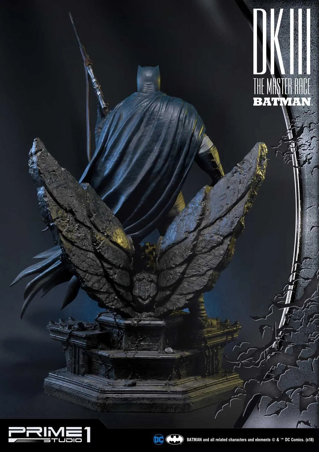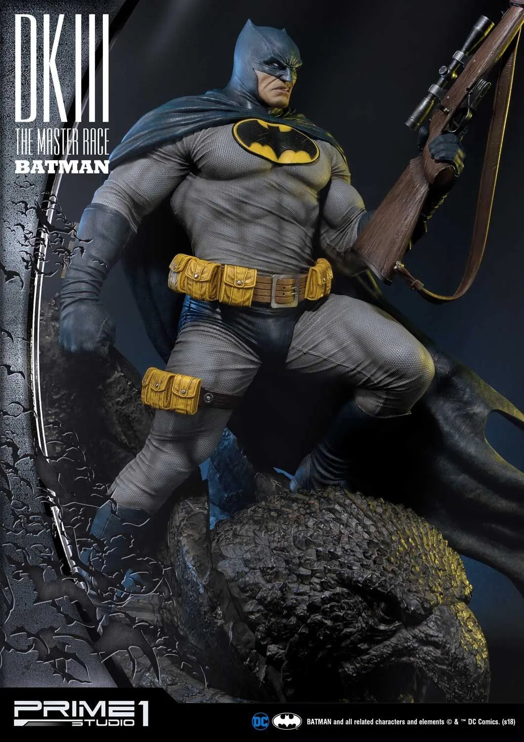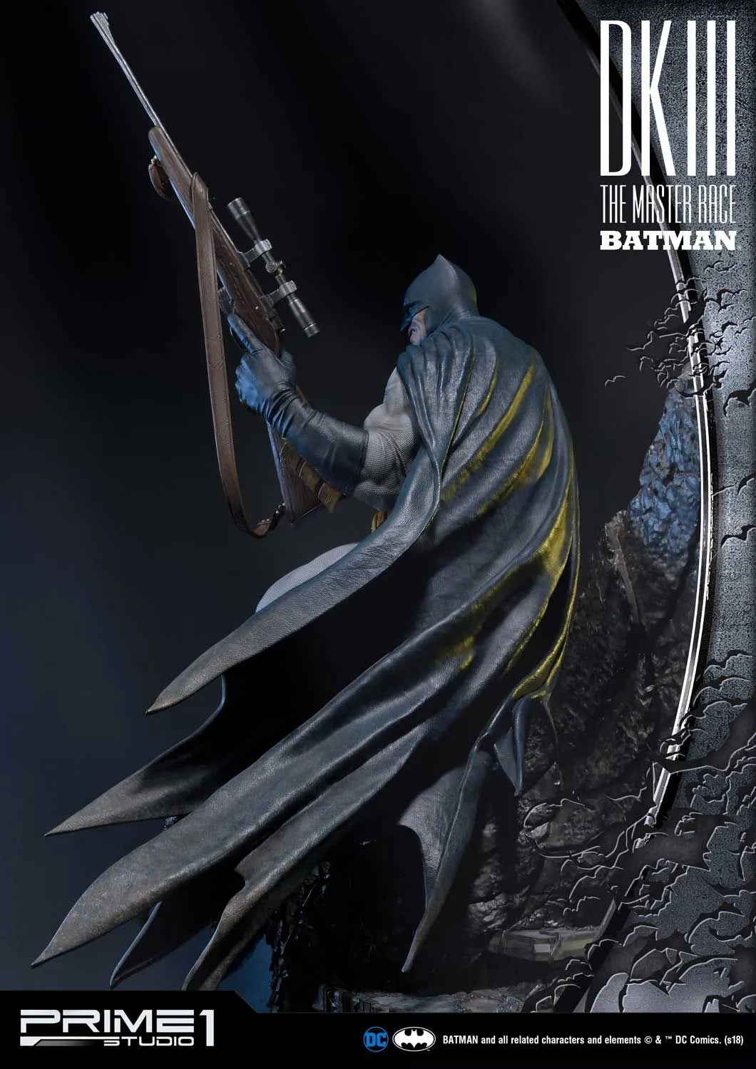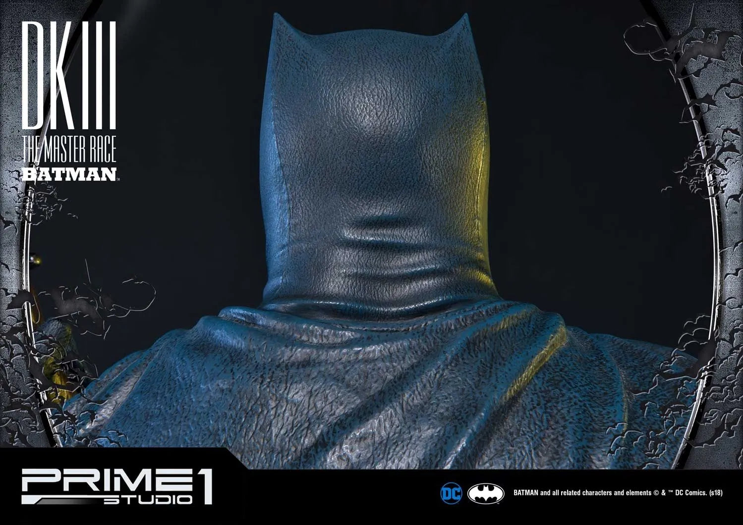 A Prime 1 Studio tem o orgulho de apresentar a MMDCDK3-01 em escala 1/3: Batman de The Dark Knight III: The Master Race. The Dark Knight III: The Master Race, também estilizado como DK III: The Master Race, é uma série limitada de nove edições da DC Comics, co-escrita por Frank Miller e Brian Azzarello e ilustrada por Miller, Andy Kubert e Klaus Janson. Já se passaram 3 anos desde que Batman esteve ativo pela última vez. Nesse tempo, a maioria acredita que ele desapareceu ou morreu, rejeitando a ideia de que ele poderia voltar. Eles estavam errados. Uma foto do que parece ser o Batman é tirada, mostrando-o derrubando impiedosamente policiais que iam atirar em um garoto desarmado. A mídia, claro, explode, e tudo o que se fala é sobre o retorno do Batman. A série é uma sequência da minissérie Batman de 1986 de Miller, continuando a história de um Bruce Wayne envelhecido retomando sua identidade como combatente do crime, auxiliado por sua ajudante Carrie Kelley (Robin) e apresentando um elenco de personagens do Universo DC, incluindo Superman, Lanterna Verde e Mulher-Maravilha.