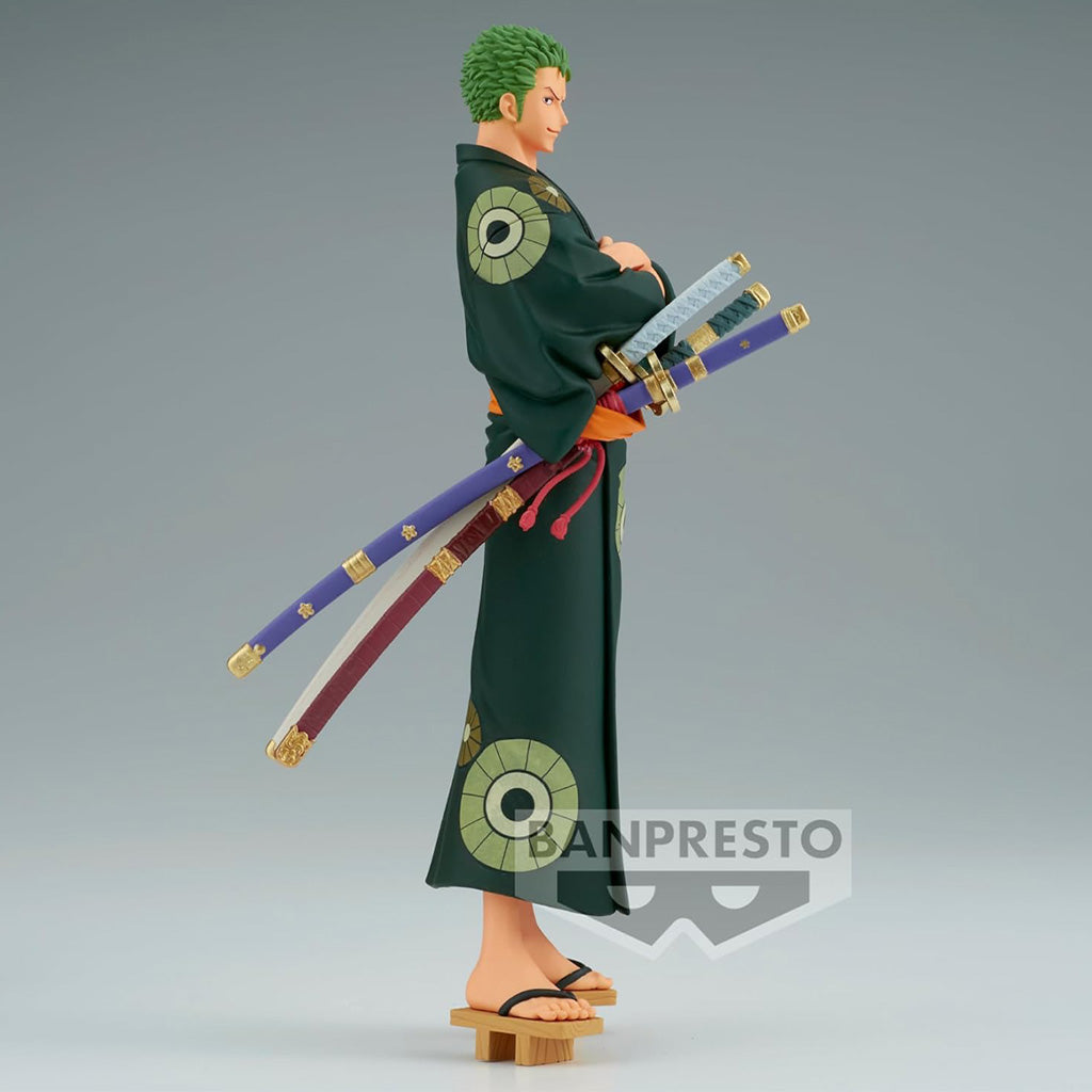 Roronoa Zoro exibe seu lado mais tradicional nesta estátua Banpresto da linha Grandline Series: Wanokuni. Vestido com um elegante yukata verde e suas espadas sempre à cintura, o espadachim dos Chapéus de Palha demonstra respeito pela cultura de Wano sem abrir mão de sua imponência. Um item marcante para fãs de One Piece e do mestre do Santoryu.