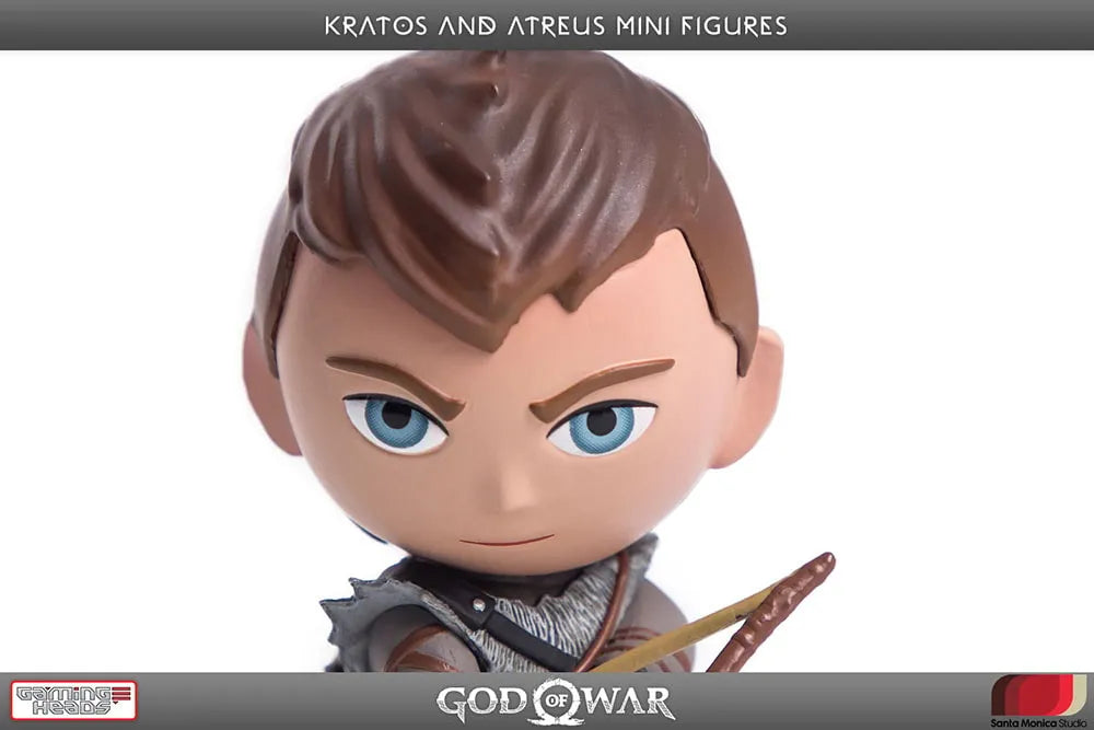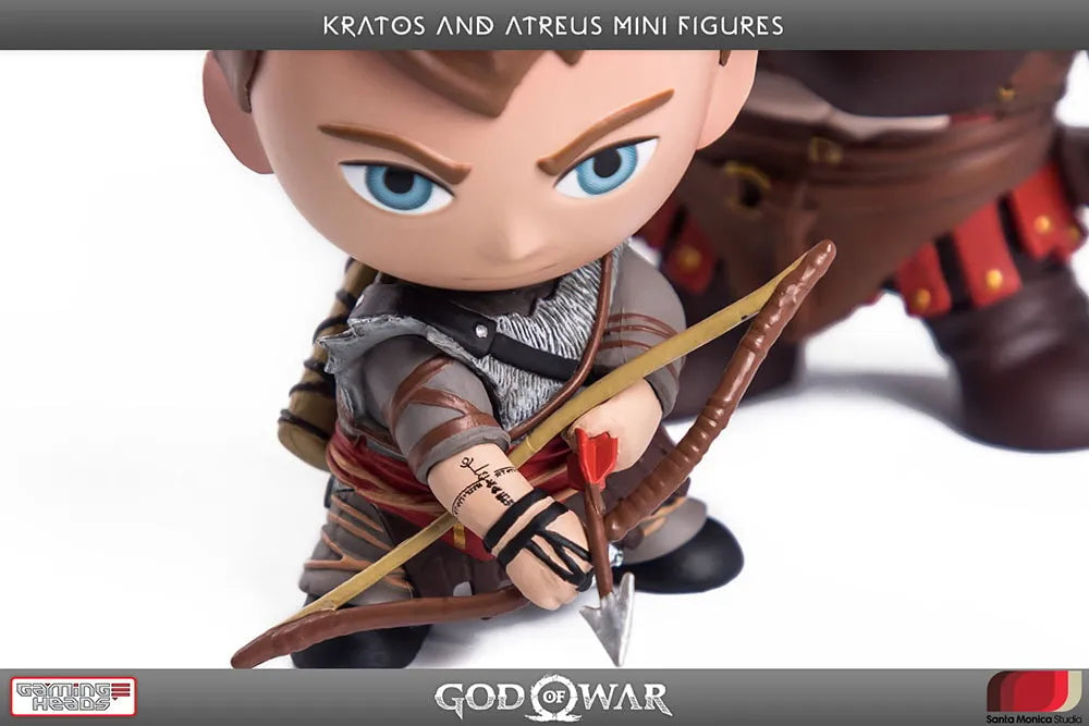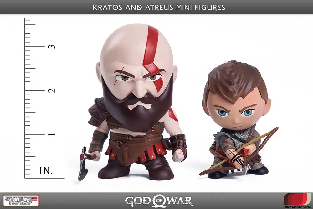 ActionFigureBrasil e Gaming Heads apresenta a Deus da Guerra™: Mini Figuras de Kratos e Atreus! Este conjunto com duas figuras inclui uma figura de Kratos com 9 cm de altura e uma figura de Atreus com 7 cm de altura — tamanho perfeito para exibir em praticamente qualquer lugar.