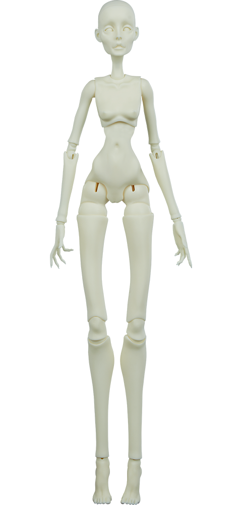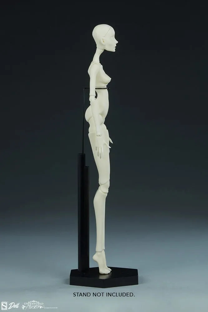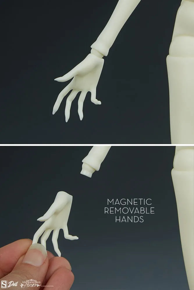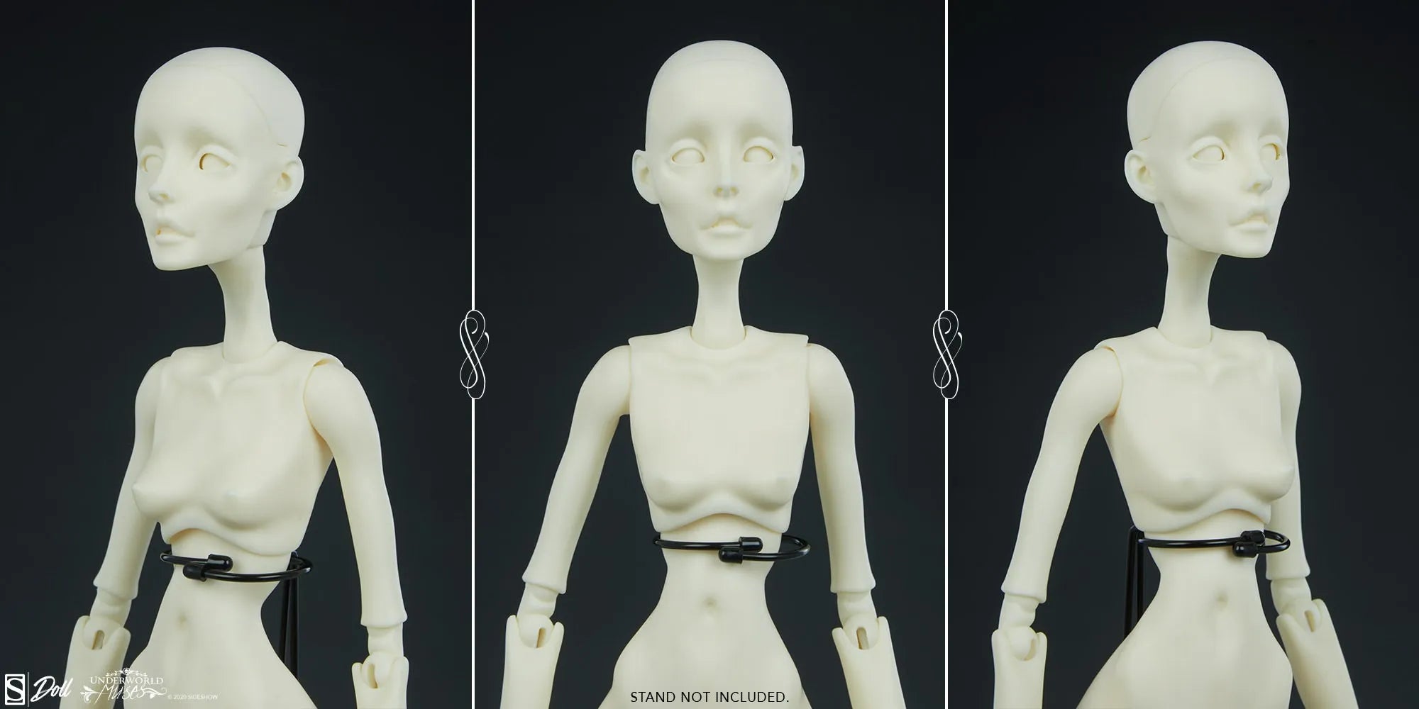 Cada elemento é feito à mão e moldado individualmente; o corpo é montado manualmente e é incrivelmente dinâmico. Esta boneca intrincada e altamente articulável possui articulações nos tornozelos, joelhos, quadris, pulsos, cotovelos, cintura, ombros e pescoço. Uma placa na parte de trás da cabeça, pescoço com articulação dupla, encaixes personalizados para os olhos e mãos magnéticas permitem uma figura extremamente personalizável.
