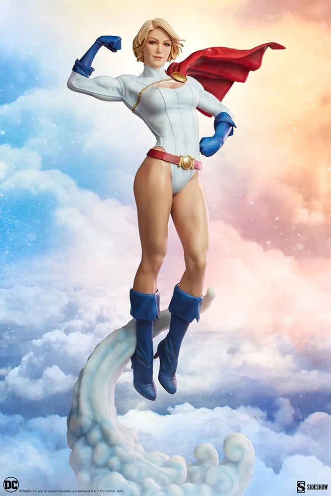 Voando pelos céus acima de uma base de nuvens rodopiantes, a Estátua Power Girl Premium Format mede 63,5 cm de altura. Como prima do Superman da Terra-2, Kara Zor-L é conhecida por sua força, maturidade e fisiologia kryptoniana, fortalecida pelo sol amarelo da Terra. Ela posa poderosamente aqui, flexionando seus músculos em um momento de calma entre as batalhas.
