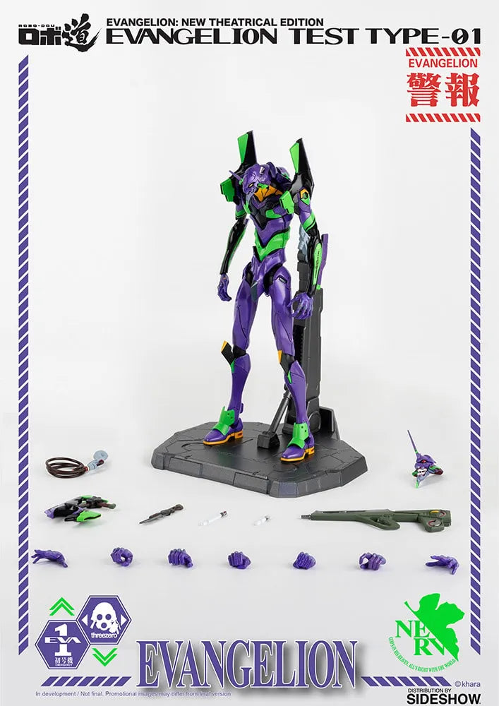 O colecionável Evangelion Test Type-01 é uma figura articulada sem escala, com aproximadamente 25 cm de altura, com uma estrutura principal notável em die-cast que proporciona 48 pontos de articulação. ThreezeroAs renomadas técnicas de aplicação de pintura são utilizadas para destacar todos os detalhes, com uma tinta que brilha no escuro usada nas áreas verdes e nos olhos para criar efeitos luminosos quando exibidos no escuro.