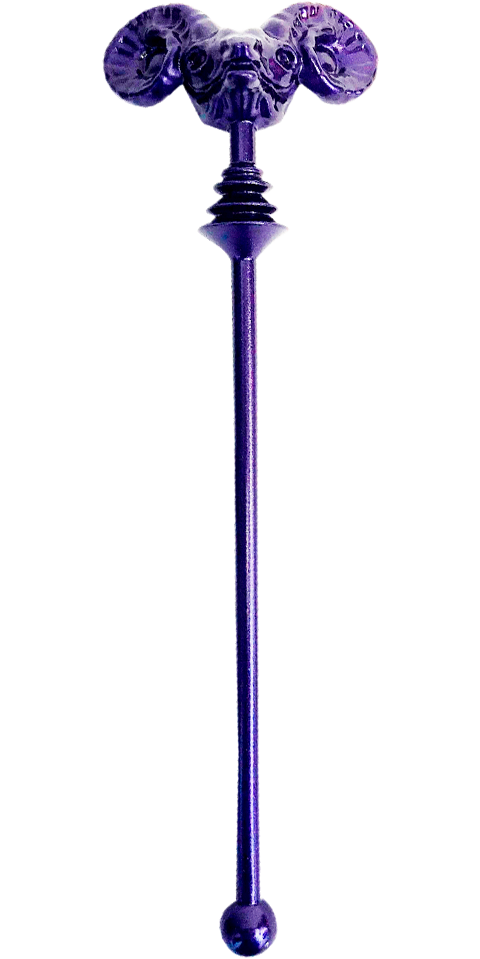Uma réplica oficial de alta qualidade e em escala do Cajado do Caos usado por Esqueleto em Mestres do Universo.