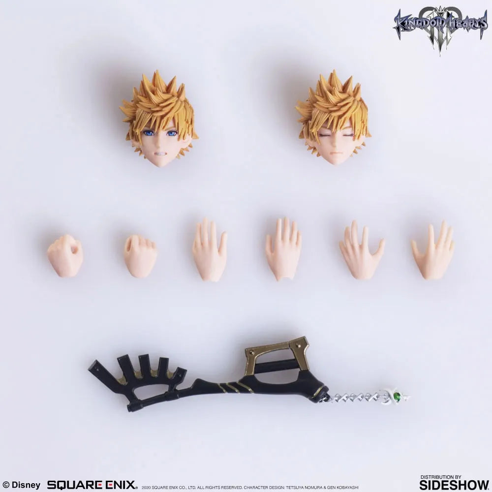 Também estão incluídos a keyblade Wayward Wind, cabeças intercambiáveis, com uma pronta para a batalha ou com os olhos fechados, e seis tipos de partes de mãos.