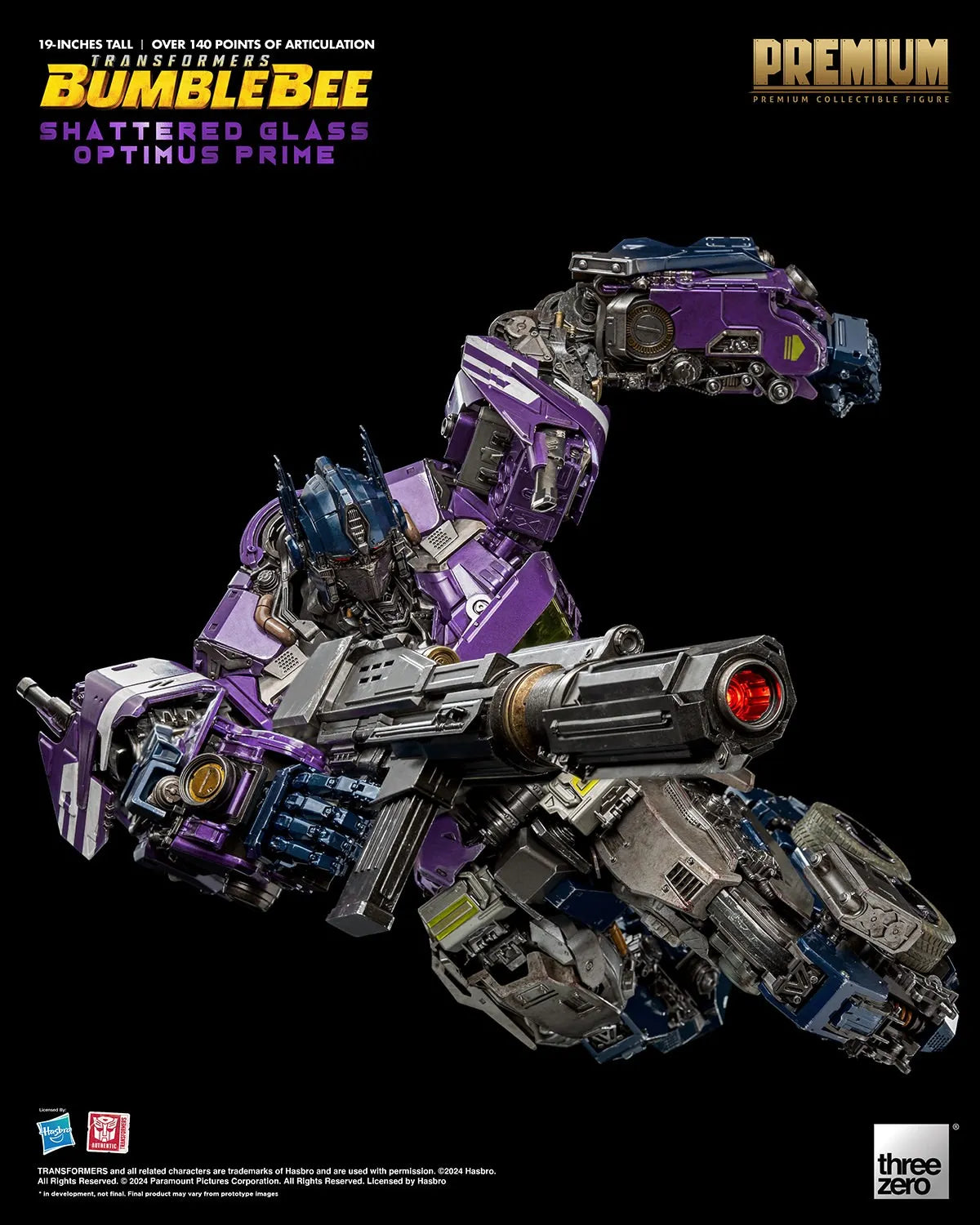 threezero tem o orgulho de apresentar Shattered Glass Optimus Prime como o próximo personagem na Série de Figuras Colecionáveis PREMIUM dos Transformers, limitada a 1.200 peças no mundo todo! No universo distorcido de Shattered Glass, o líder tirânico dos malvados Autobots, Optimus Prime, assume uma aparência sinistra com seu esquema de cores distinto que exala uma aura de escuridão e crueldade.