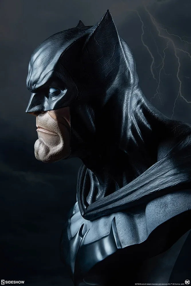 Saia das sombras e adicione o Busto em Tamanho Real do Batman à sua batcaverna de colecionáveis da DC Comics hoje!