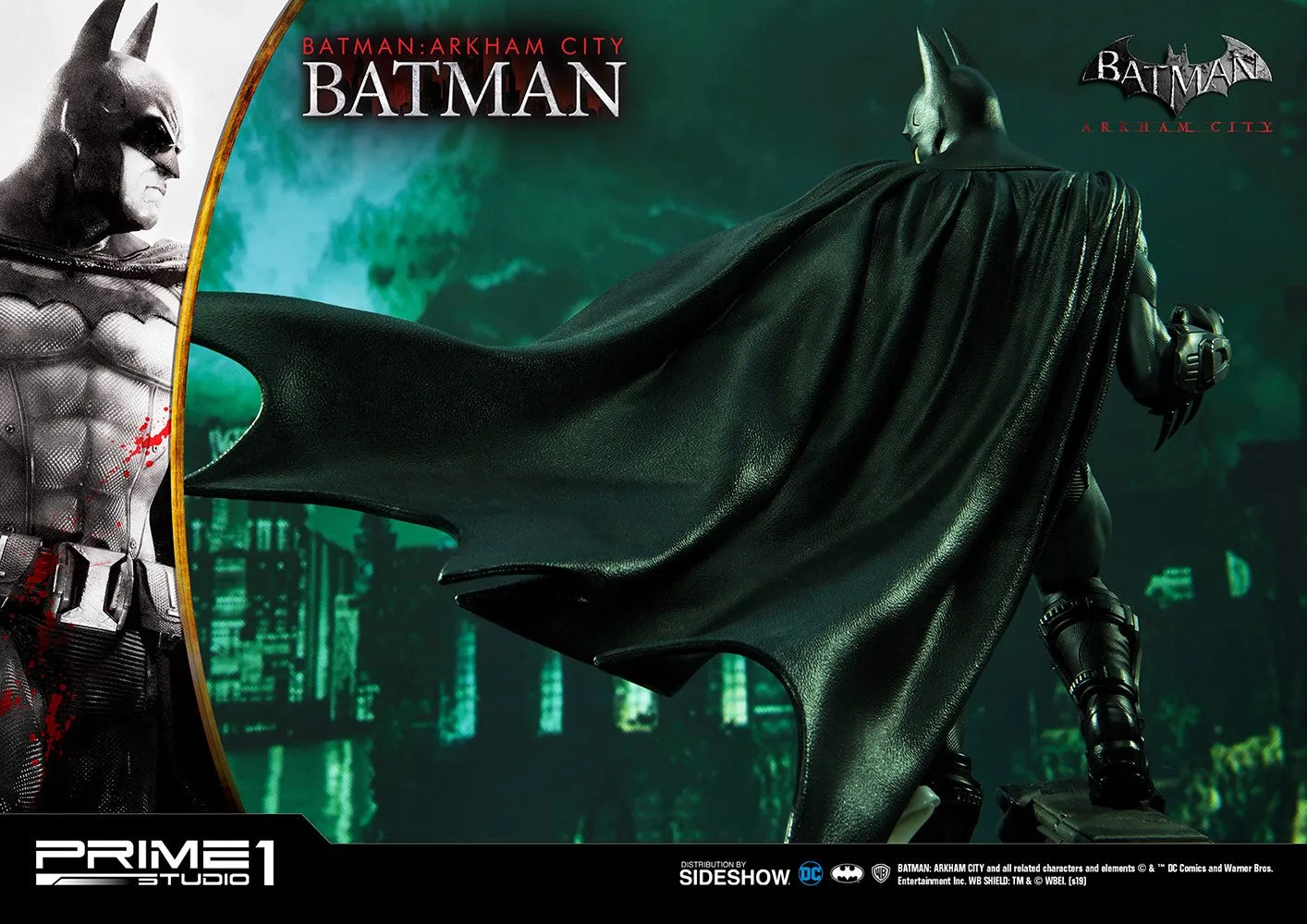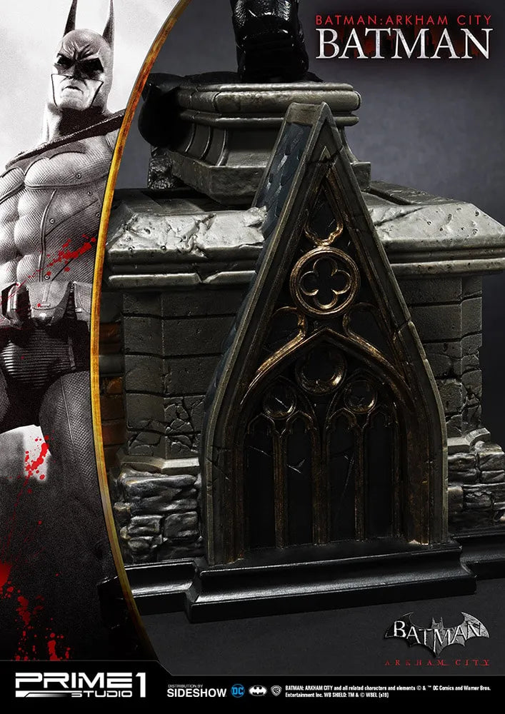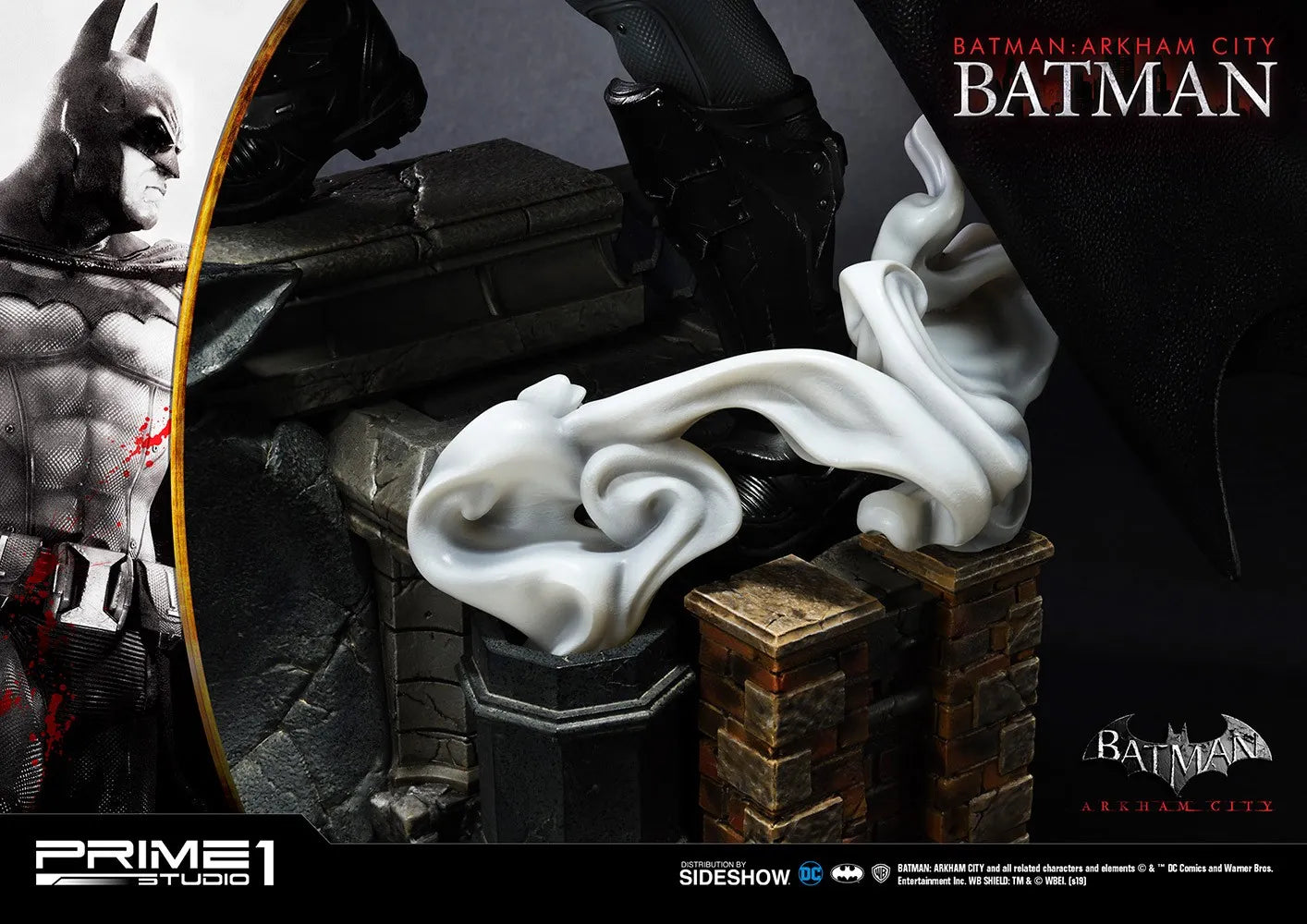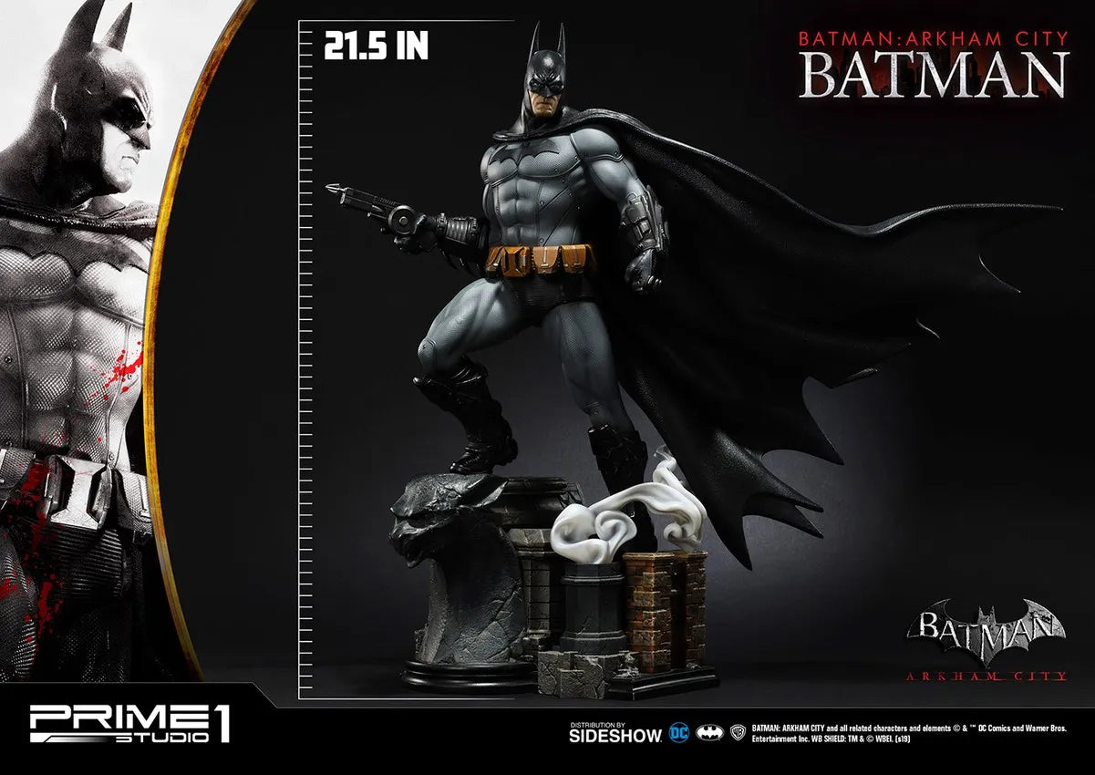 Batman lucha solo contra villanos en la aislada Ciudad Arkham, una superprisión construida para albergar a todos los reclusos del Asilo Arkham y la Prisión Blackgate. Prime 1 Studio recreó la pose y el traje gris de Batman con gran atención al detalle. La estatua mide aproximadamente 54,6 cm de altura e incluye manos derechas intercambiables.