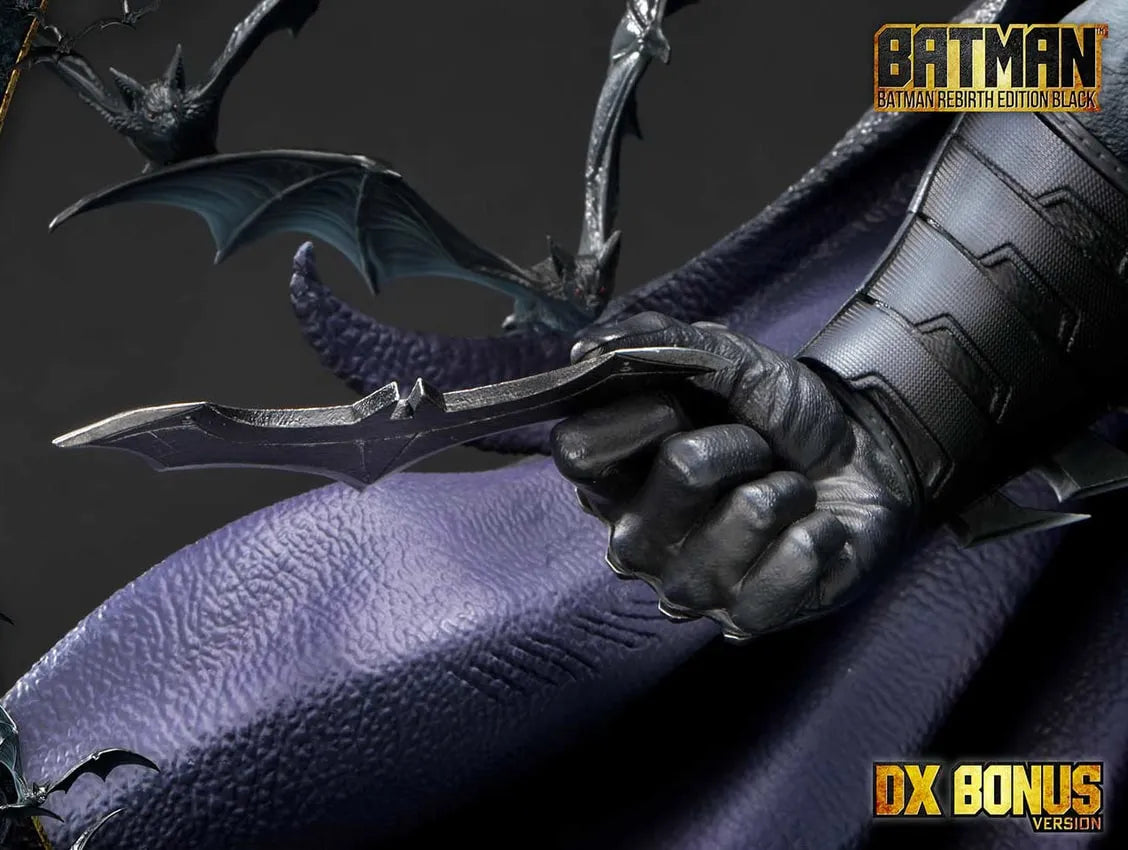 A Estátua em Escala de Um Quarto Batman Rebirth Edition Black (Deluxe Bonus Version) apresenta: