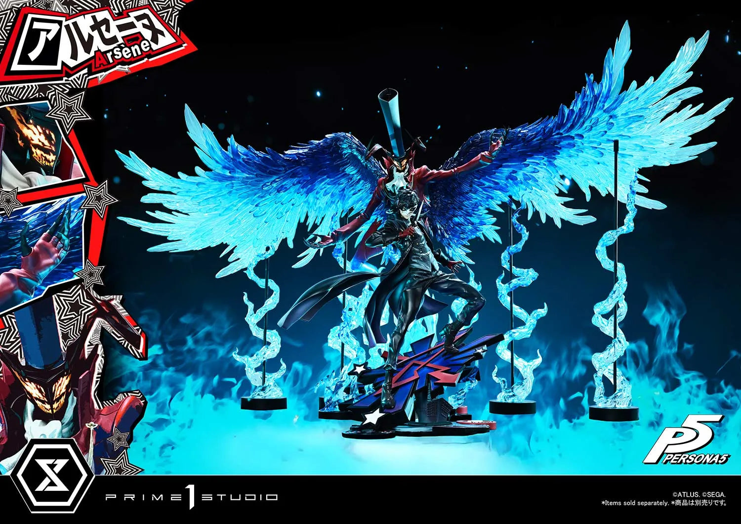 Mas Arsène nunca está completo sem o usuário de Persona que o comanda. Projetada como uma peça complementar à "Protagonista (Joker)" na mesma escala, esta estátua apresenta escultura e trabalho de cor que se alinham perfeitamente entre os dois. Exiba-os juntos para recriar a emocionante cena de invocação.