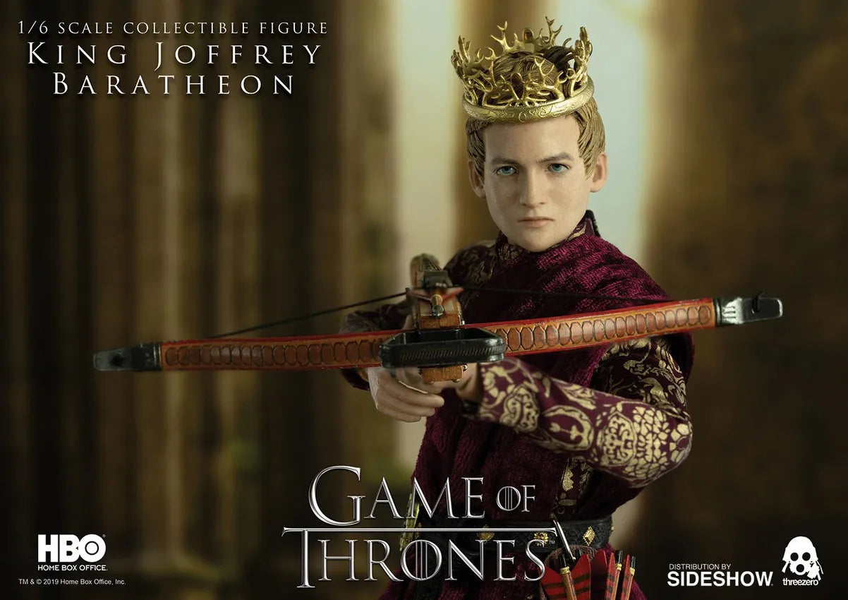 A Figura em Escala 1/6 do Rei Joffrey Baratheon tem aproximadamente 29 cm de altura e apresenta uma semelhança altamente realista com Jack Gleeson da série de televisão. Joffrey vem com um traje de tecido finamente costurado com textura detalhada e inclui uma coroa intercambiável.