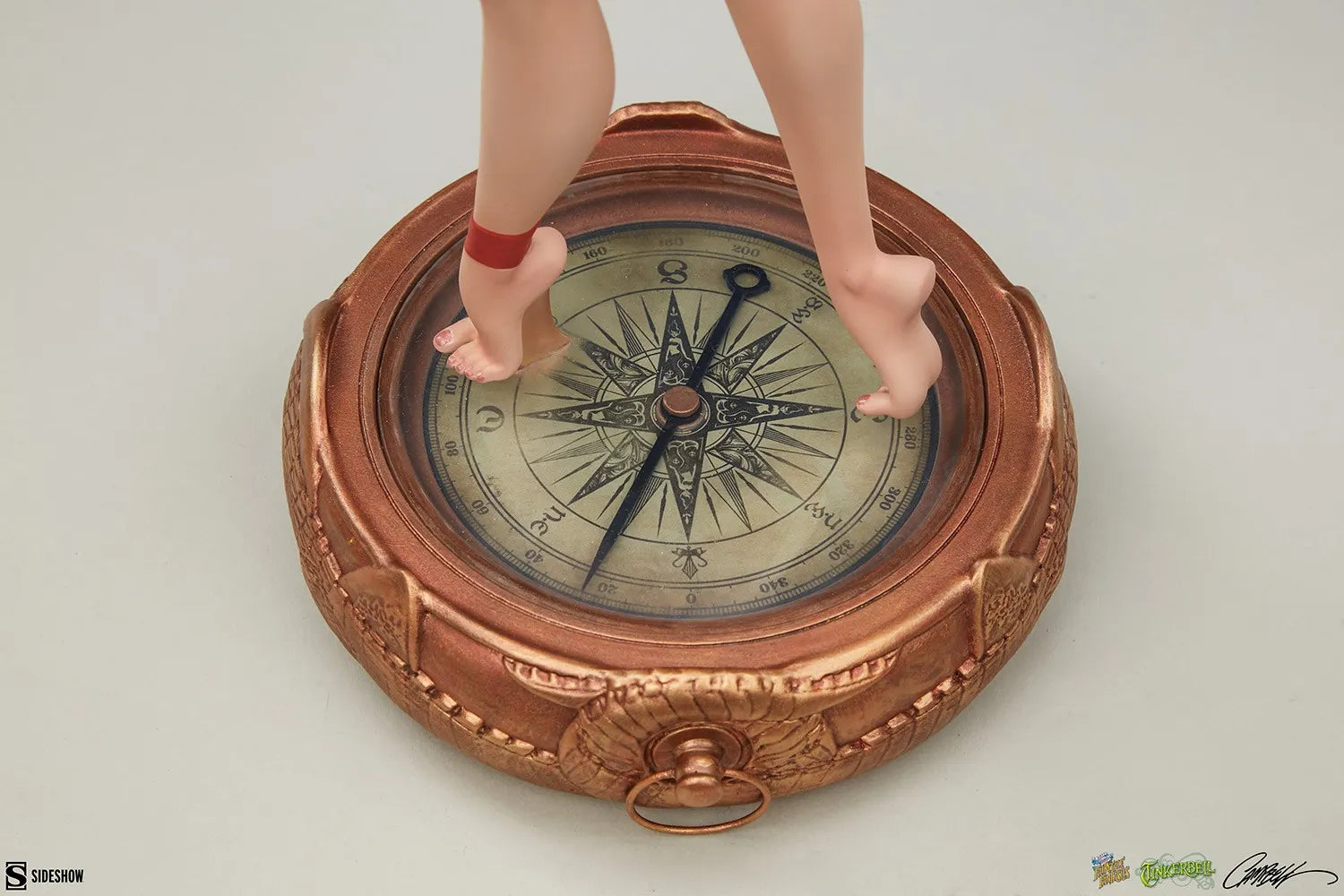 Sininho tem 30 cm de altura, desfilando sobre uma intrincada base de bússola da Terra do Nunca que aponta o caminho para a aventura. Detalhados crocodilos gêmeos estão esculpidos no instrumento de cor bronze, que possui uma face transparente realista sob os delicados pés de Sininho.