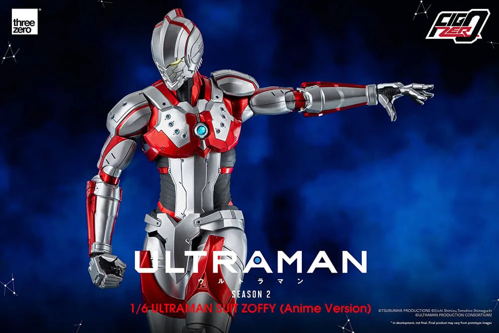 FigZero 1/6 ULTRAMAN SUIT ZOFFY (Versão Anime) tem aproximadamente 30,5 cm de altura e é uma figura totalmente articulada com mais de 40 pontos de articulação. O colecionável possui uma pintura detalhada e decalques, sendo parcialmente construído em liga de zinco fundido e outras partes de metal. Possui recursos de iluminação LED nos olhos e no Color Timer no peito.