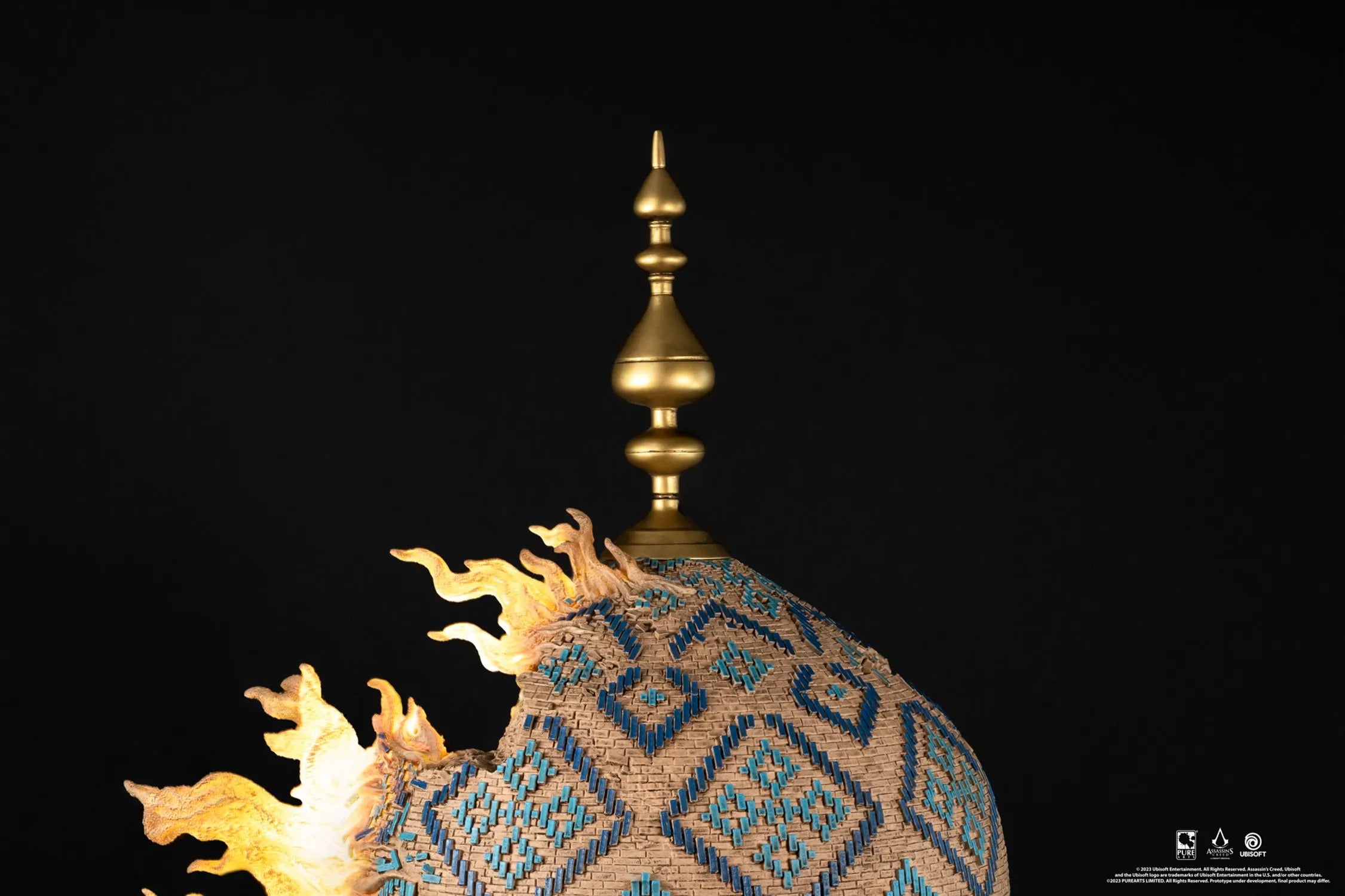 aparece ágil como uma águia, pousando sobre uma base de arquitetura islâmica antiga e pronto para lutar. Faça espaço na sua coleção porque a Basim Estátua em Escala 1:4 do Animus Basim é uma peça chave na sua Ordem dos Assassinos. is a key player in your Order of Assassins.