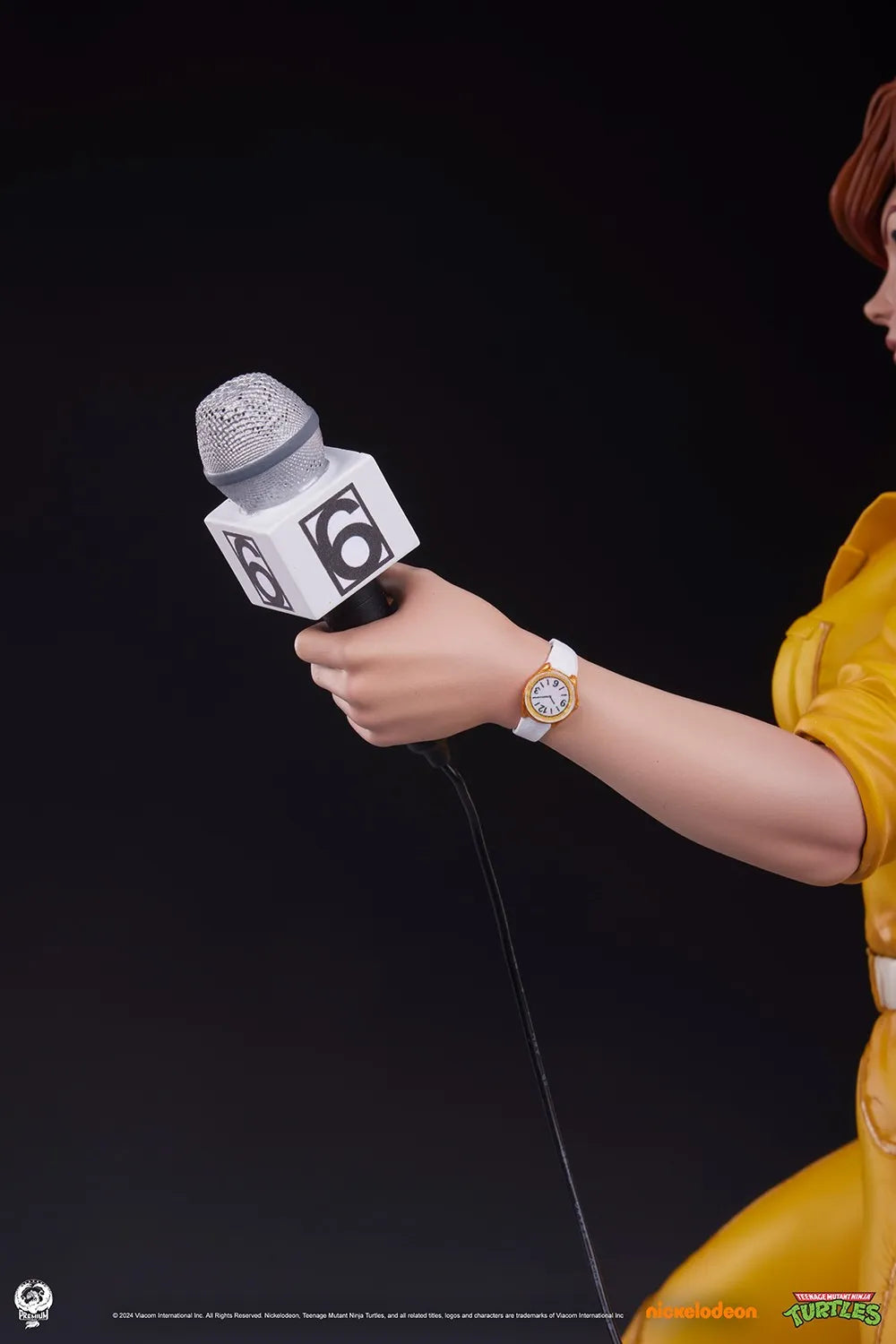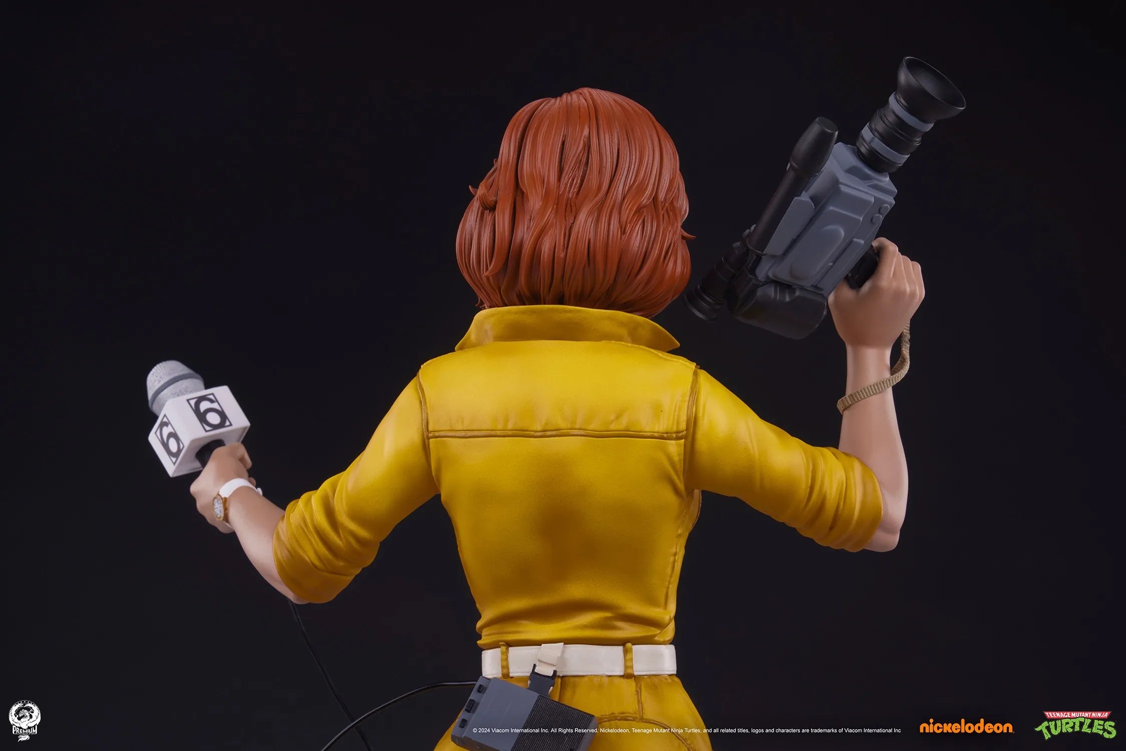 ActionFigureBrasil e a Premium Collectibles Studio têm o orgulho de apresentar o April O’Neil Estátua Premier Series em Escala 1:4, uma empolgante nova adição à nossa linha de colecionáveis baseada na clássica série animada das Tartarugas Ninja. A Estátua April 1:4 tem mais de 45 cm de altura e está vestida com seu icônico macacão amarelo. Sua mão direita segura uma câmera de vídeo do Canal 6, enquanto na mão esquerda está seu fiel microfone conectado a um pequeno gravador preso nas costas do macacão. Esta destemida repórter parece pronta para a ação sobre uma base que representa uma cena de rua, repleta dos restos quebrados de um robô Mouser maníaco.