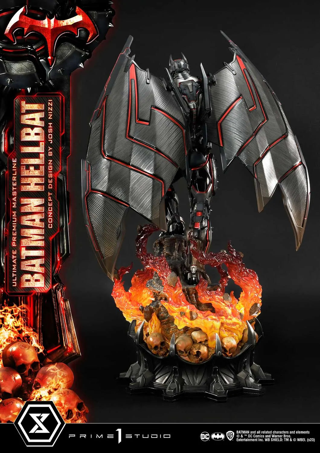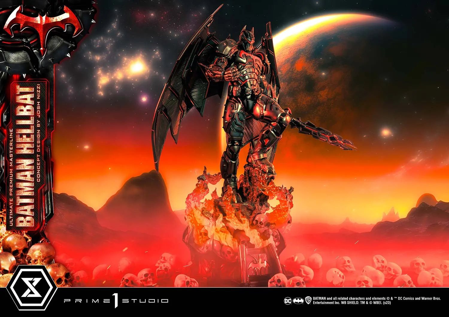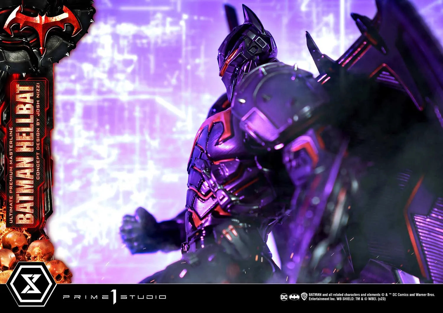 Prepare-se para se equipar! Entre no traiçoeiro Bat-Suit, uma escolha ousada que busca poder a um preço. A Prime 1 Studio apresenta aos fãs da DC o lançamento super épico da nossa linha de Batman, o UPMDC-06 Ultimate Premium Masterline Batman Hellbat "Design Conceitual por Josh Nizzi."
