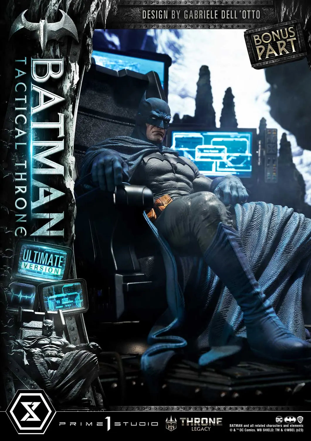 A Prime 1 Studio tem o prazer de apresentar esta adição inovadora à Coleção Throne Legacy. Em colaboração com o renomado artista de quadrinhos Gabriele Dell’Otto para o nosso 10º aniversário, aqui está a Versão Ultimate Bonus do Batman Tactical Throne em escala 1:4.