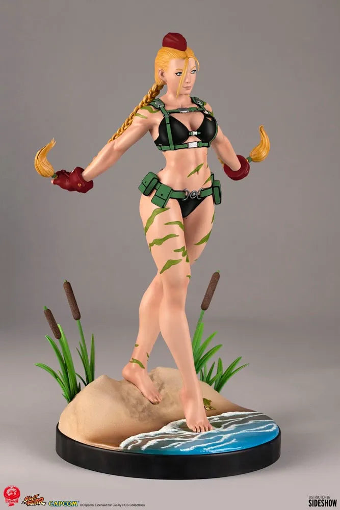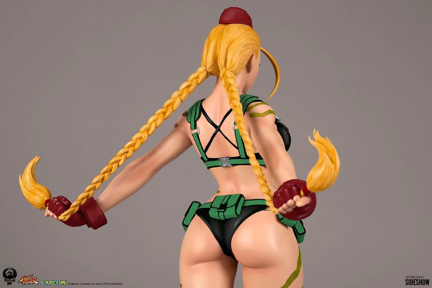 A Estátua Cammy Season Pass é totalmente esculpida com base no modelo do jogo da personagem favorita dos fãs, agora em um formato colecionável tridimensional. A segunda dama de Street Fighter veste um biquíni preto com detalhes em arneses verdes, marcas de camuflagem verde, luvas vermelhas e seu icônico chapéu vermelho. O físico atlético de Cammy é esbelto e esportivo, capturando toda a força pela qual ela é conhecida tanto dentro quanto fora do combate.