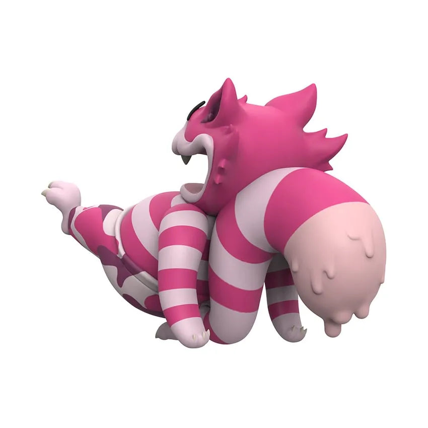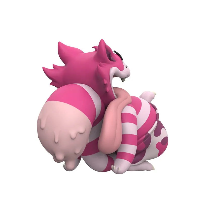 Sua imaginação não está pregando peças em você. Você consegue acreditar em 6 coisas impossíveis antes do chá das cinco? Veja aqui um gato, com um sorriso tão largo que sua úvula é tão aparente quanto o céu é azul. Aqui está um gato que não é preto, marrom ou branco - mas listrado em tons de rosa com calças camufladas rosa. Aqui está um gato, cujo sorriso é tão largo que sua língua longa e pesada cai e arrasta atrás. Aqui está um gato que anda sobre 2 patas por causa de um estilo tão descolado. Aqui está um gato com os olhos riscados, mas com a habilidade de ver além. Aqui está um gato liderando o caminho, enquanto partes dele caem de sua cauda.