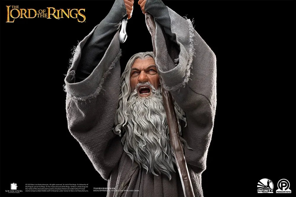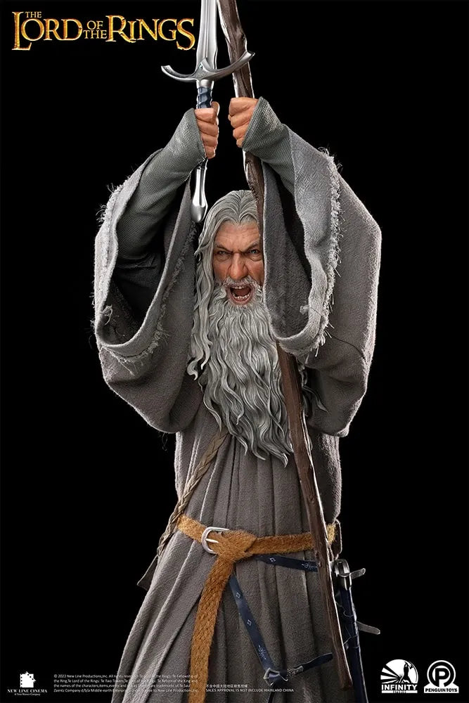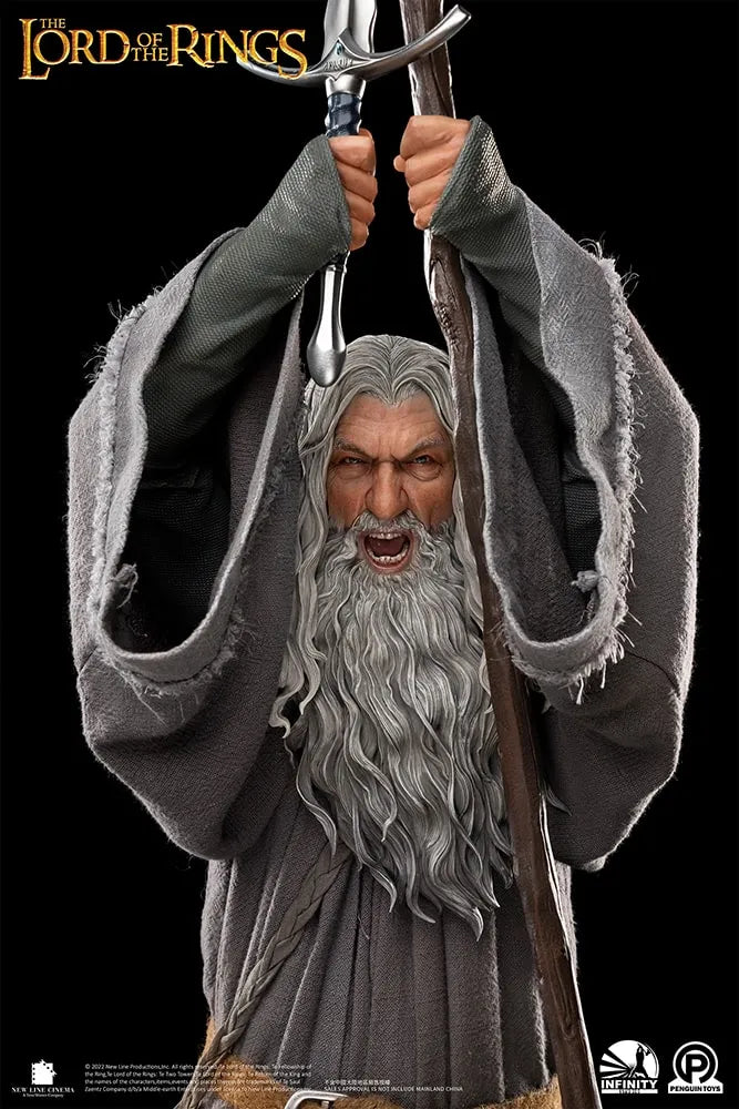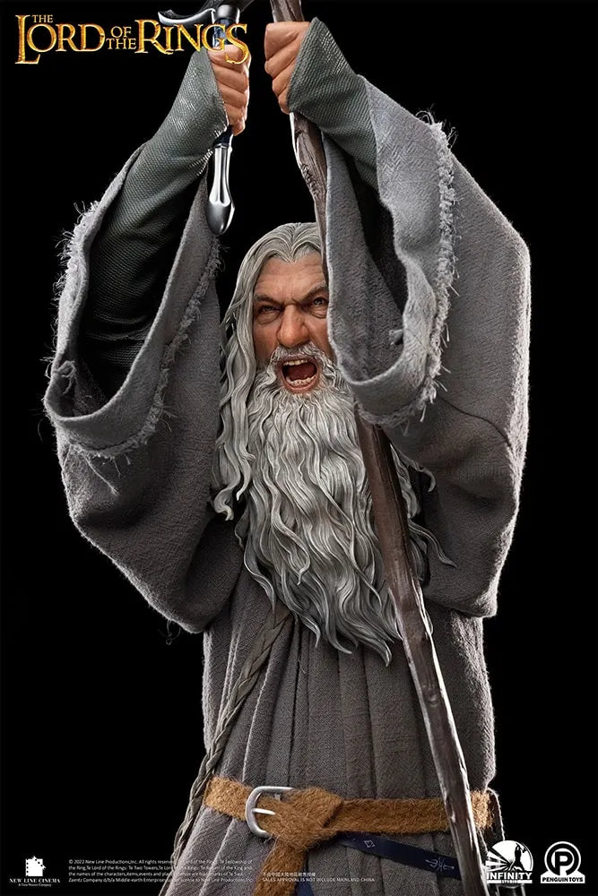 A estátua em meia-escala com corpo inteiro de "O Senhor dos Anéis," o mago Gandalf está chegando. A Sociedade está começando a tomar forma. A Gandalf, o Cinzento (Edição Premium) Estátua pertence à Série Master Forge em Meia-Escala, onde a Infinity Studios e a Penguin Toys adaptaram o icônico personagem para uma meia-escala, mas com um corpo cheio de detalhes requintados, delicadamente e amorosamente restaurados, dando a este item uma presença definitiva. Ela é projetada para atender ao desejo dos colecionadores de buscar a classe máxima em suas O Senhor dos Anéis Largura: 41 cm