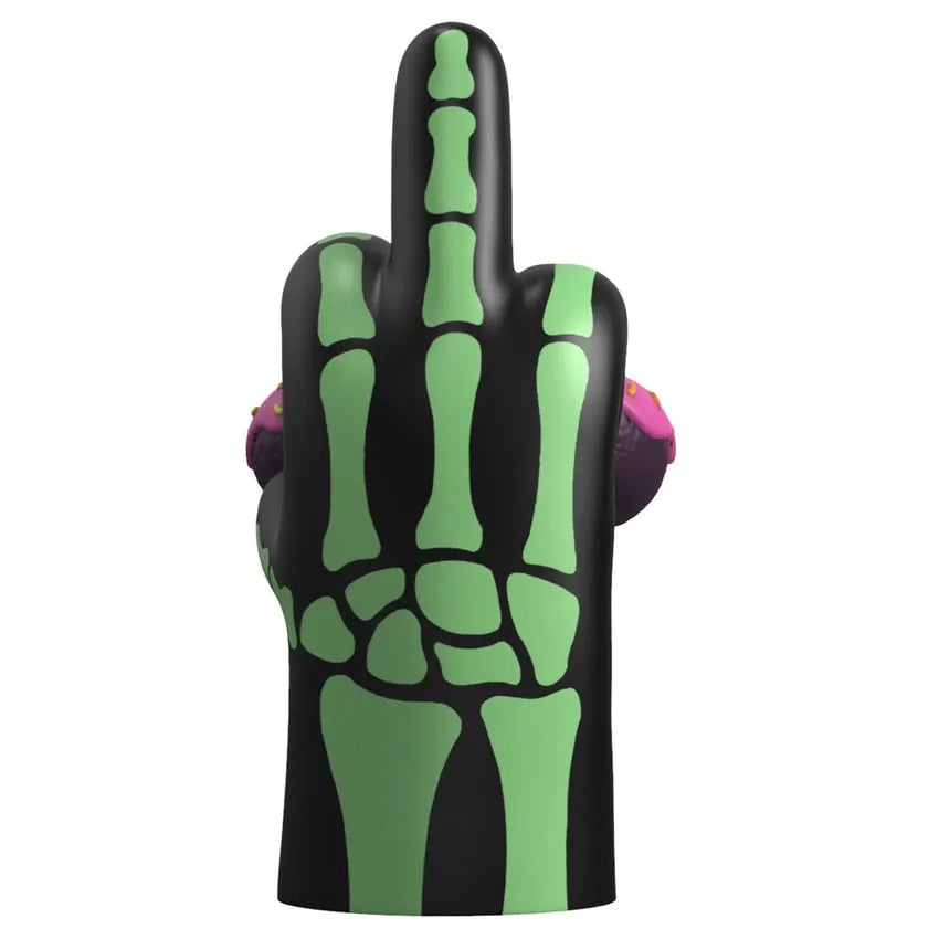 A mão preta rechonchuda com um esqueleto que brilha no escuro faz uma declaração sem remorso neste Halloween, mostre o dedo para todos os críticos com o novíssimo Eu Não Dou a Mínima (Edição Assustadora), a peça de destaque perfeita para quem já esgotou a paciência.