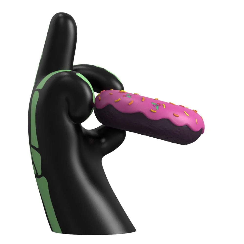 Morda esse donut assustador neste Halloween! Dê um susto no seu corpo com uma cobertura doce rosa e granulados de larvas e moscas suculentas. Arranque esse donut da mão sinistra que mostra o dedo do meio para todos sem discriminação e veja seu brilho arrepiante enquanto você luta por ele. Você certamente terá que se esforçar por essa guloseima saborosa de Halloween!