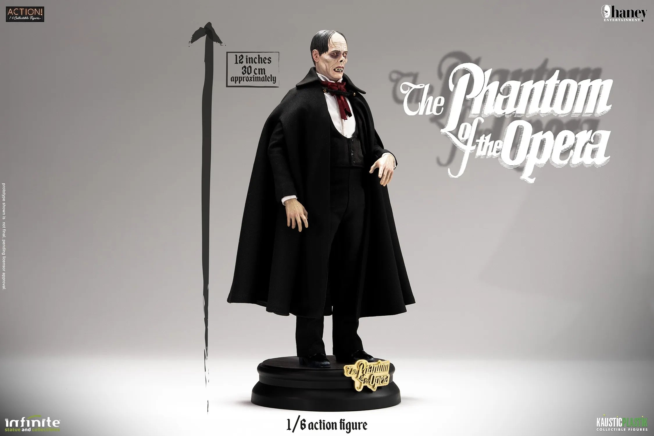 Apresentando a Figura de Ação Oficial em Escala 1:6 do Fantasma da Ópera com Lon Chaney do icônico filme de 1925.