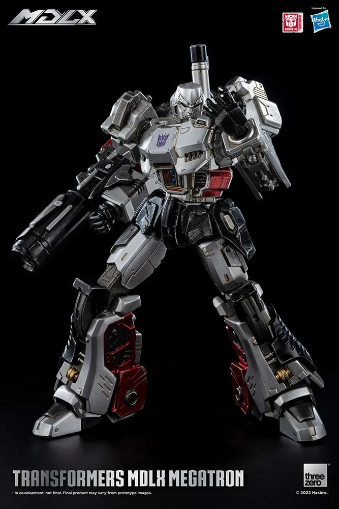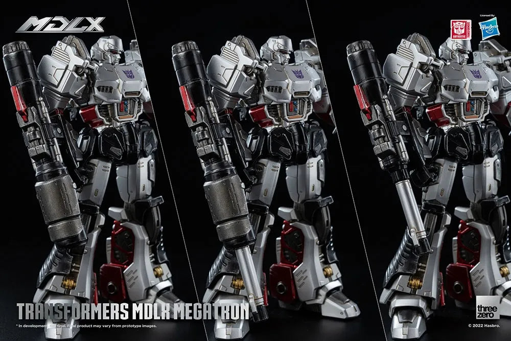 Transformers – MDLX Megatron tem aproximadamente 18 cm de altura, com cerca de 45 pontos de articulação e uma estrutura de metal fundido. Os acessórios incluem um canhão de fusão, um canhão traseiro e quatro pares de mãos intercambiáveis.