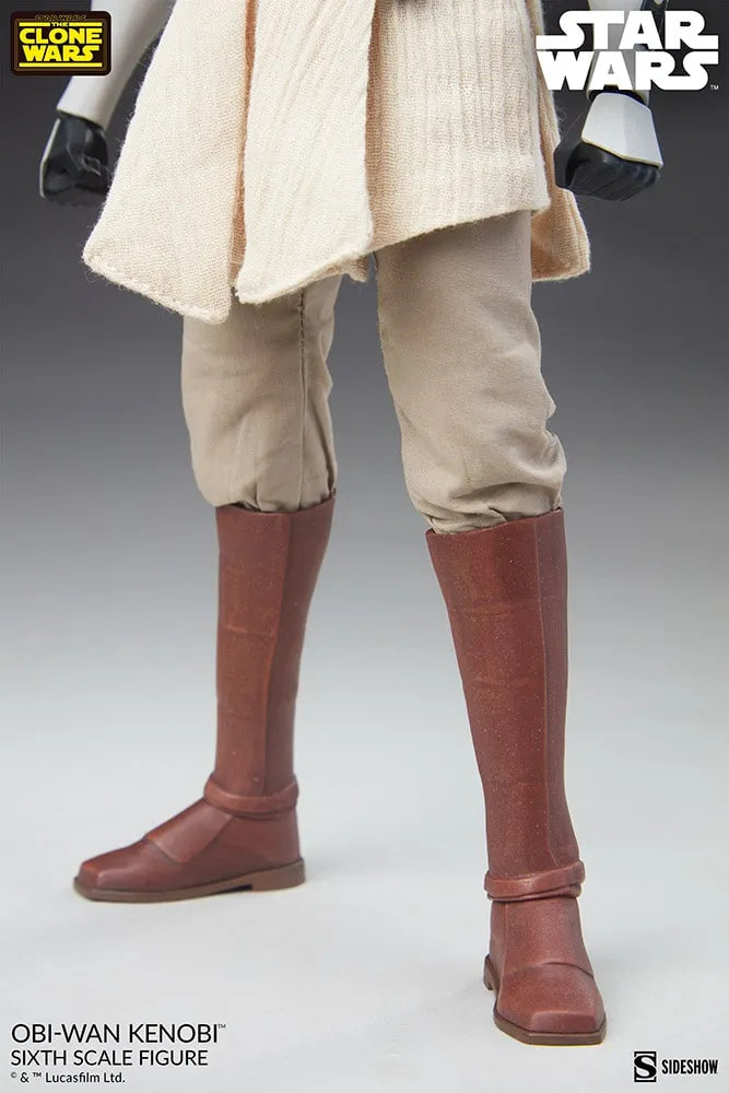 A Figura de Escala 1/6 do Obi-Wan Kenobi captura o design distinto do Cavaleiro Jedi da série animada favorita dos fãs, The Clone Wars, enquanto ele trabalha para manter a paz galáctica ao lado da Ordem Jedi. Esta figura articulada apresenta uma escultura de cabeça estilizada e um traje de tecido cuidadosamente confeccionado, composto por um manto Jedi, túnica, camiseta, tabardos, calças, uma faixa, um cinto com acessórios esculpidos e botas e manoplas esculpidas para criar seu visual uniforme característico.