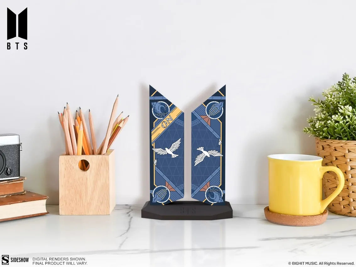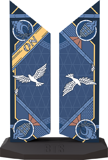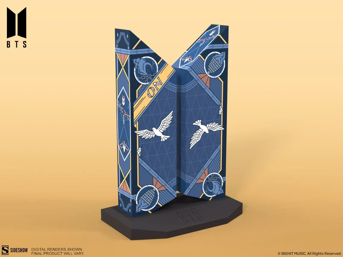 Medindo 18 cm de altura e 11,5 cm de largura, a Edição Premium BTS Logo: ON Edition assume a forma icônica do logo dos ícones pop do século 21, visualizada como um conjunto de portas se abrindo para possibilidades, e incorpora gráficos temáticos poderosos inspirados no videoclipe de “ON”.