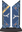 Pássaros brancos, sombras reflexivas uns dos outros, voam acima de um padrão de triângulos azul escuro contornados em dourado com uma borda azul-marinho. Dentro de uma faixa dourada, a palavra ON está escrita em uma caligrafia geométrica branca. Círculos em cada canto da estátua apresentam conchas e correntes alternadas, bem como tochas flamejantes.