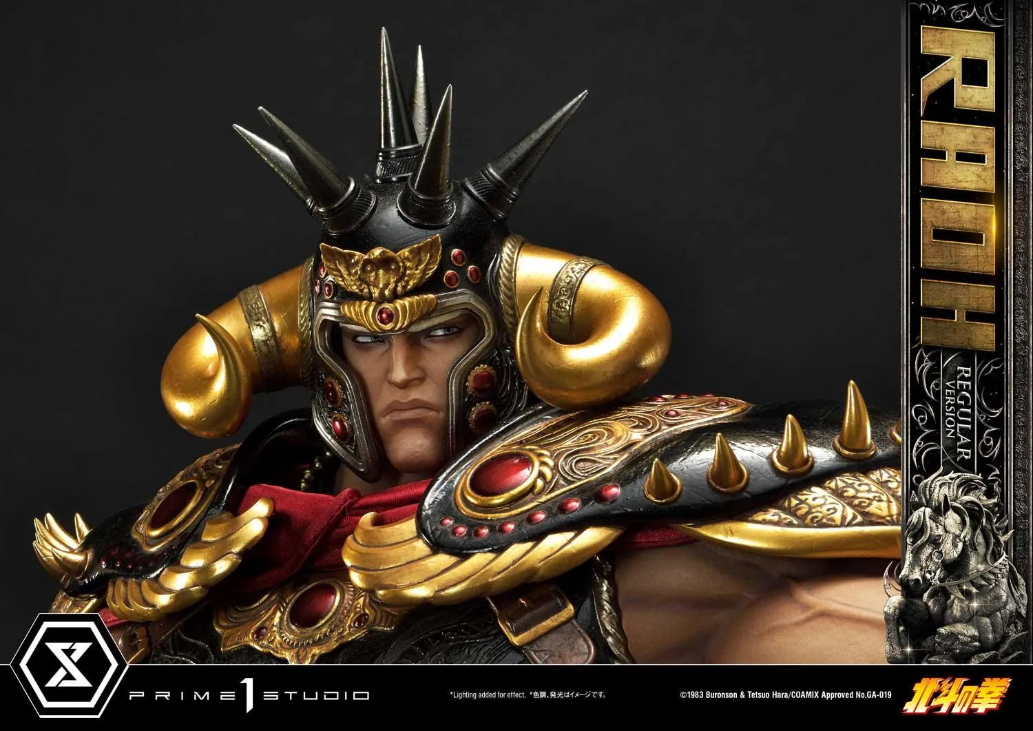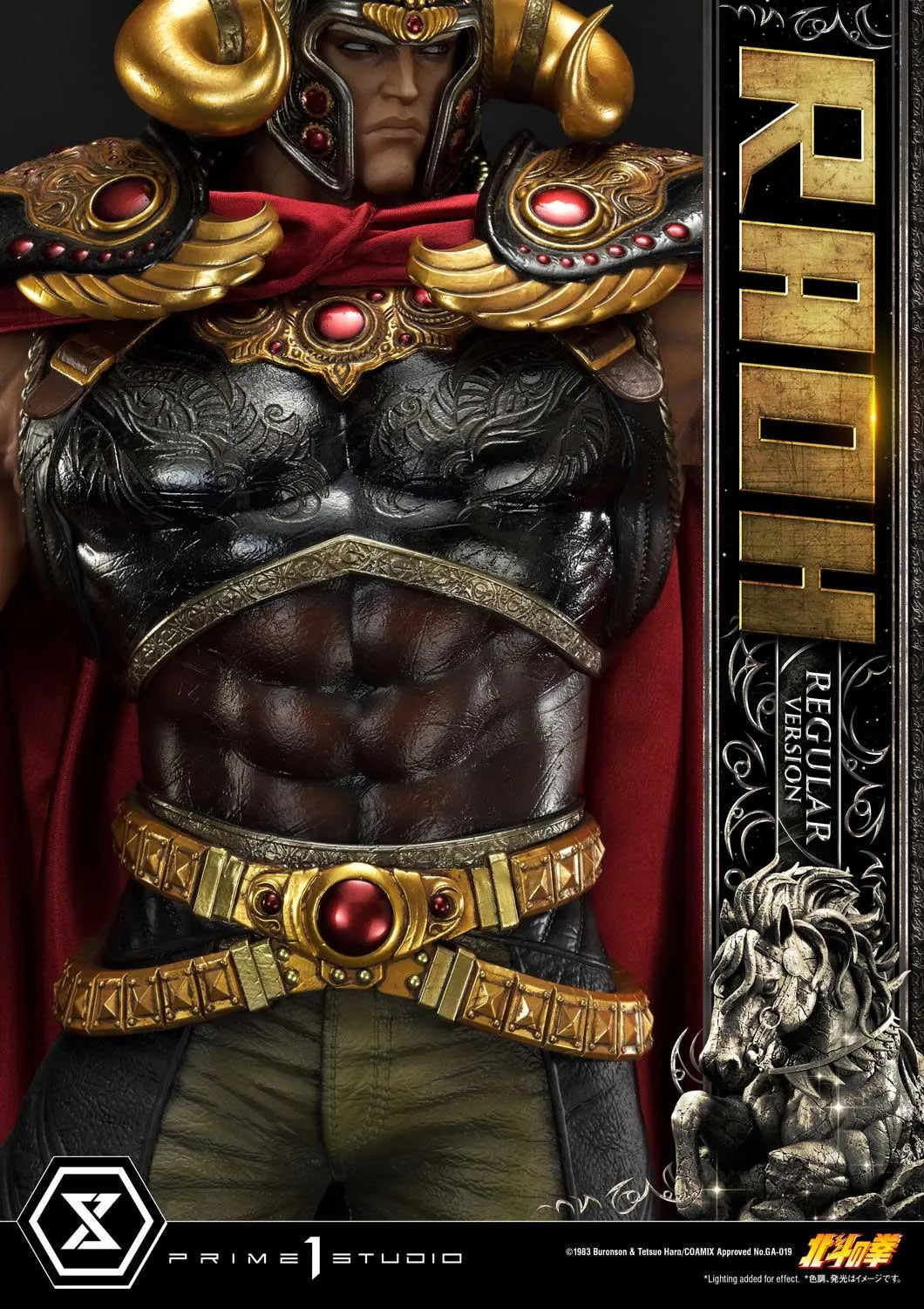Com isso em mente, a talentosa equipe da A Prime 1 Studio quis realizar um trabalho que estivesse à altura de retratar um personagem tão seminal no universo de Fist of the North Star: o ambicioso e extremamente impiedoso Raoh, Ken-Oh... Rei dos Punhos!