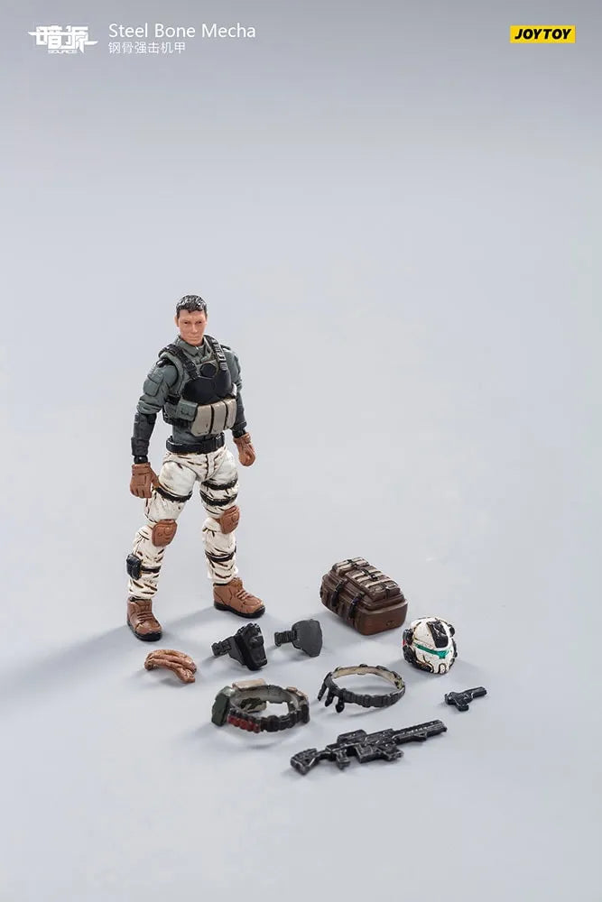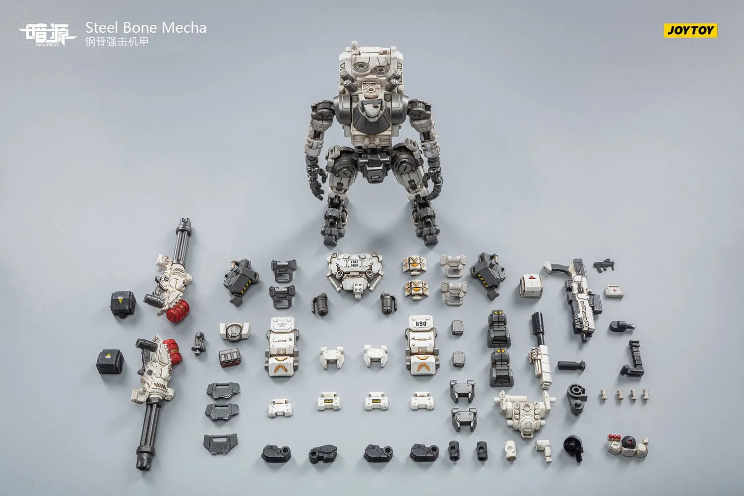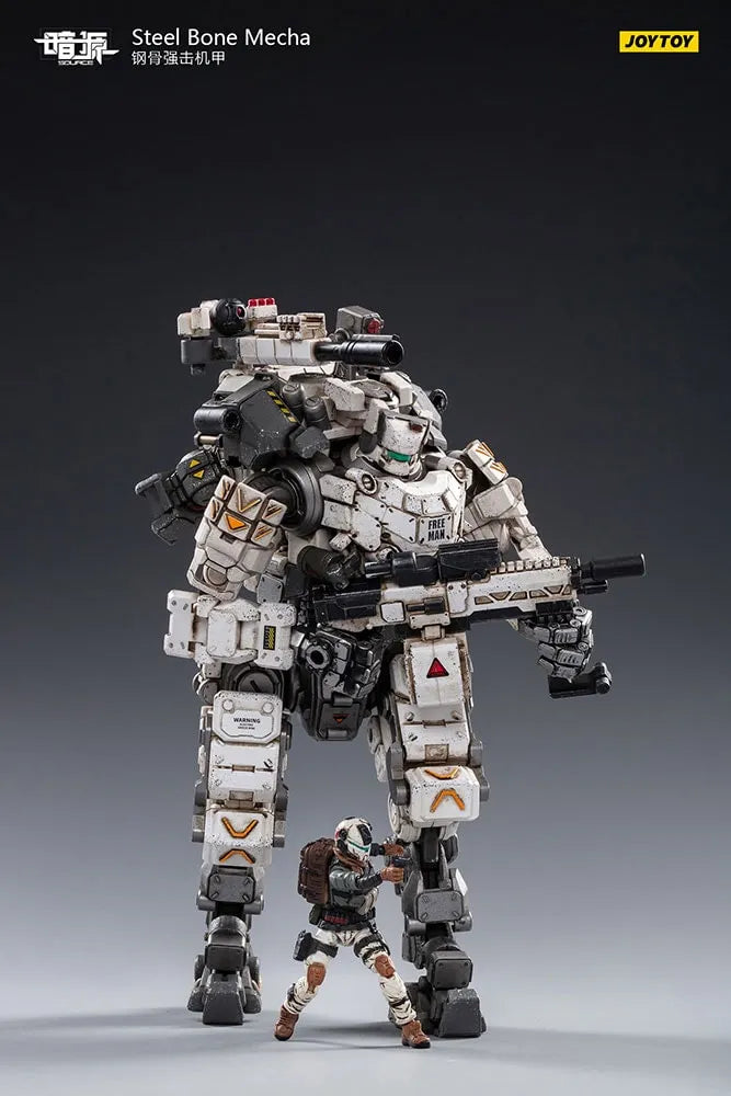 Da JoyToy, chega o recém-lançado Dark Source Steel Bone Mecha na cor branca. A figura da unidade mecha da Máquina de Combate Pesada é incrivelmente detalhada, altamente articulada e vem equipada com várias armas. Também está incluída uma figura de piloto altamente articulada que pode ser colocada dentro do cockpit do mecha.