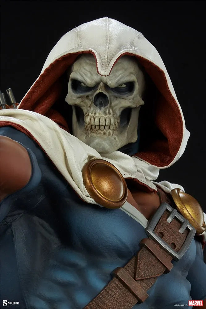 A Edição Exclusiva da Figura Taskmaster Premium Format™ inclui um retrato alternativo com máscara tática, que troca o tradicional rosto de caveira deste supervilão por um visual mais moderno e blindado.