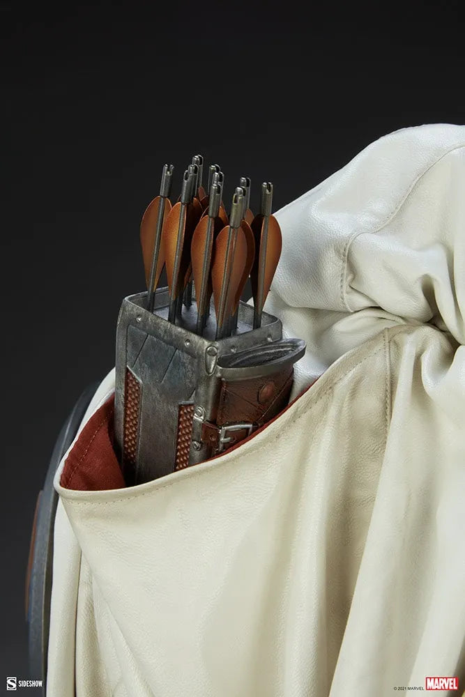 A Figura Taskmaster Premium Format™ mede 54,6 cm de altura e 63,5 cm de largura, posicionada no topo de uma base de instalação de treinamento enquanto o habilidoso estrategista Tony Masters brandia sua espada de forma assertiva contra seus inimigos. Armado com seu arsenal tradicional para lutar contra os Vingadores, incluindo a espada, um escudo e um arco com aljava, o Taskmaster está confiante de que já venceu a batalha antes mesmo de começar.