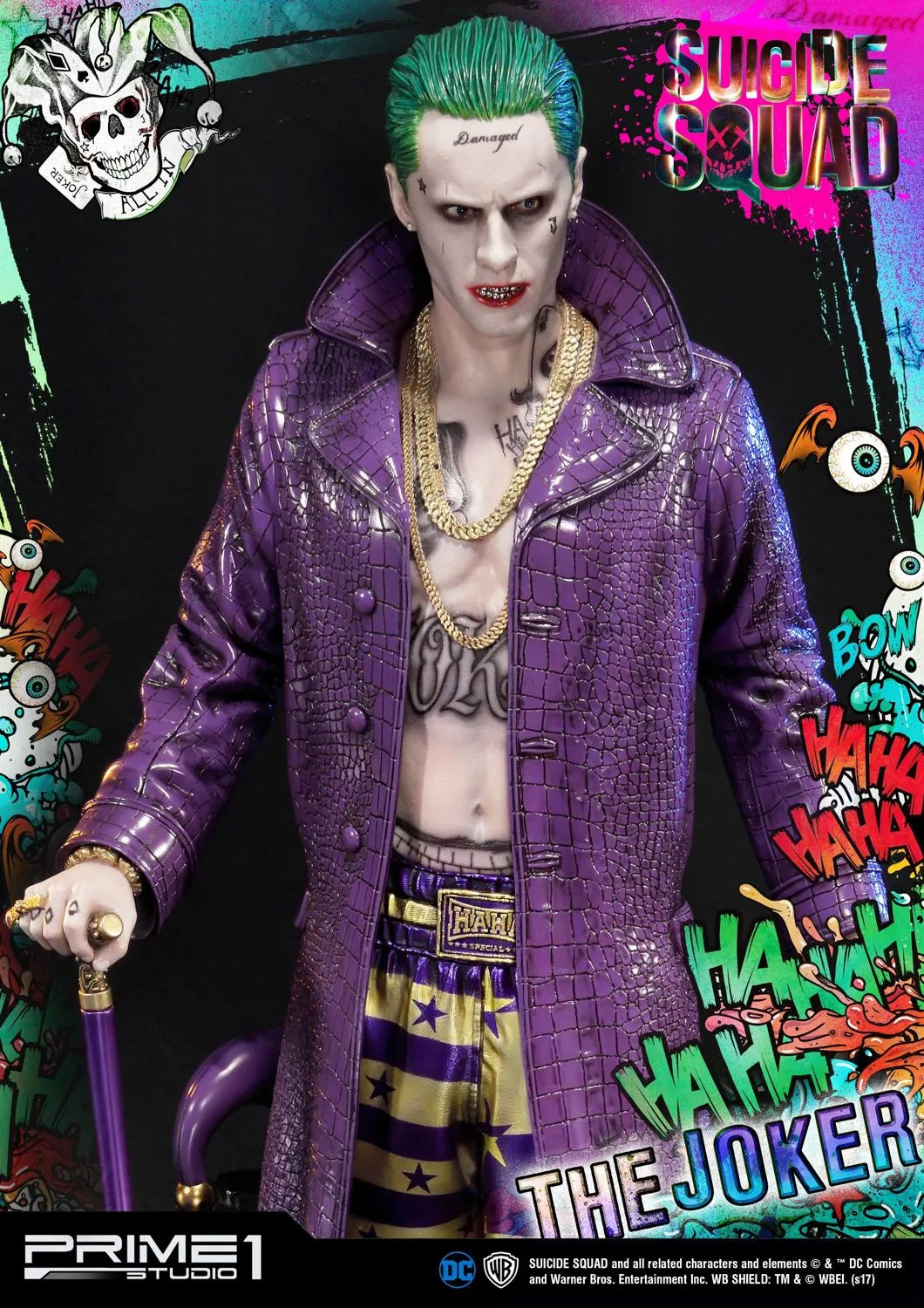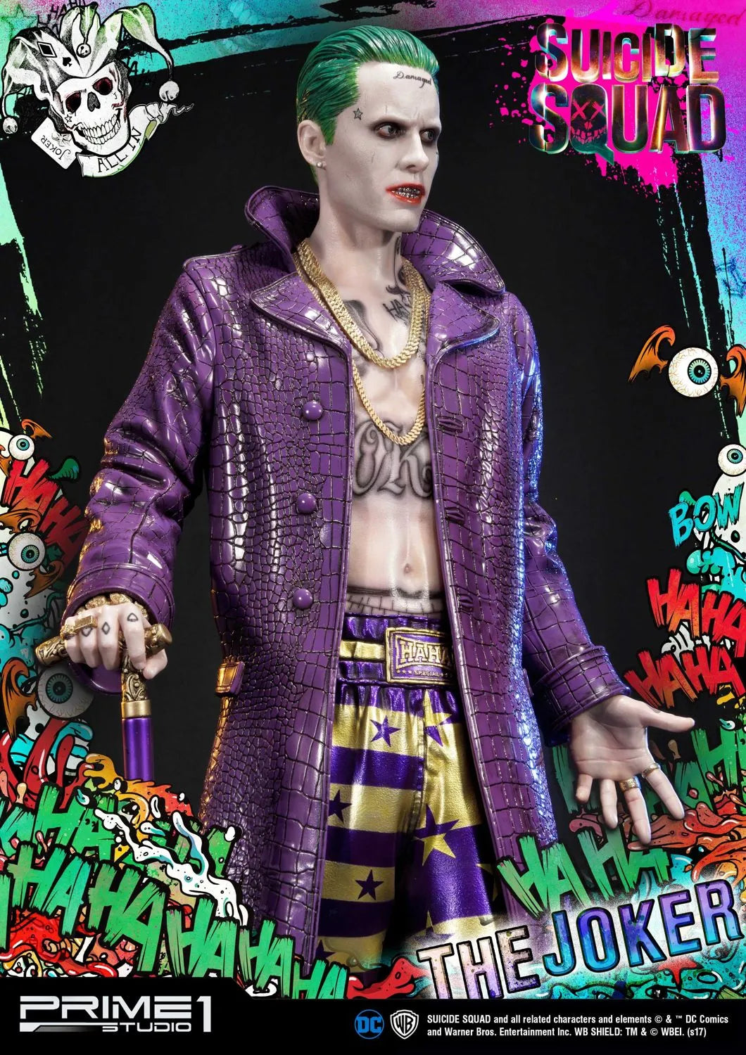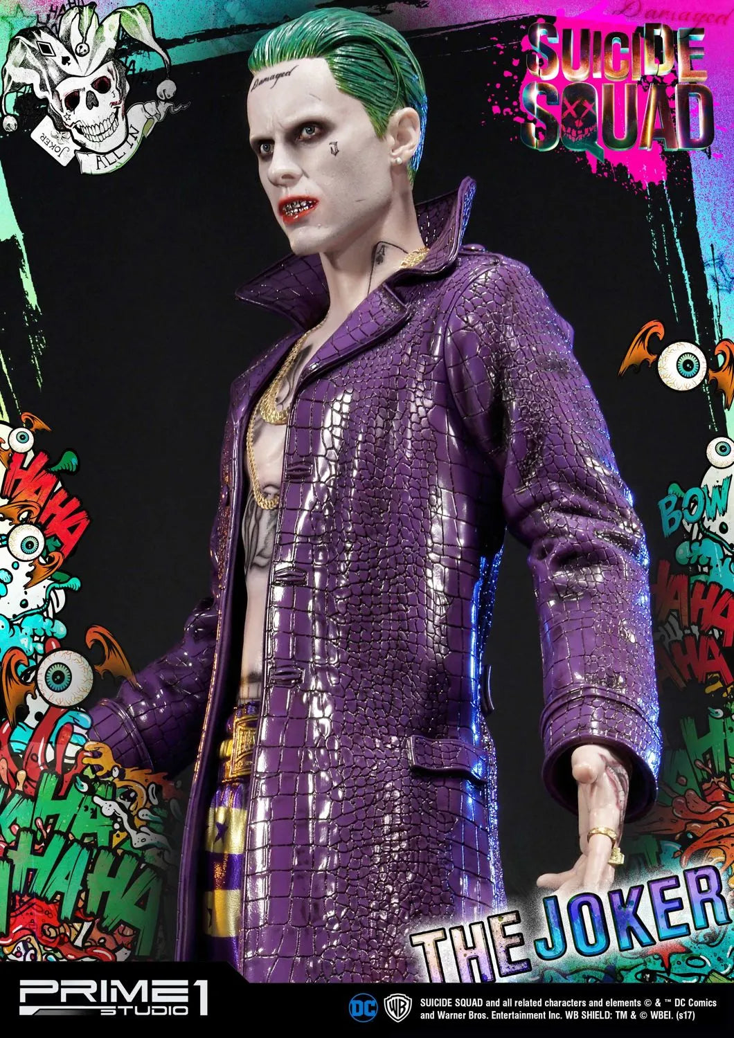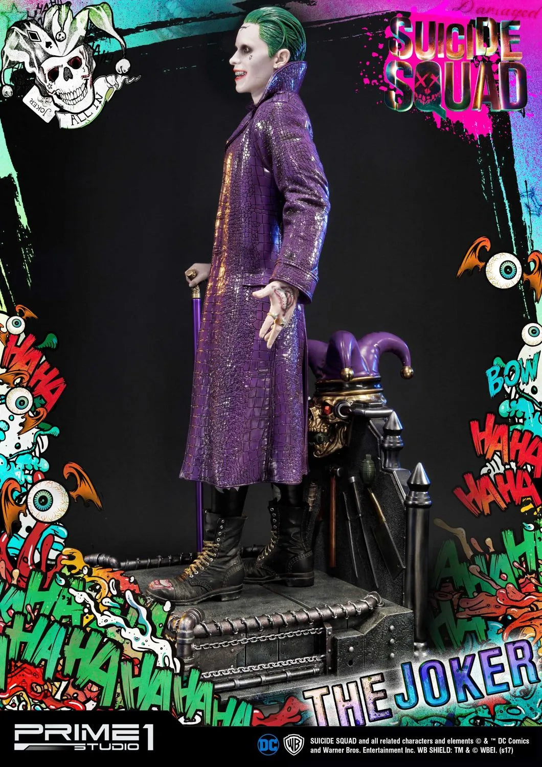 A Prime 1 Studio tem o orgulho de apresentar MMSS-03: O Coringa do filme Esquadrão Suicida (2016). O Coringa é um criminoso psicopata extremamente formidável e infame de Gotham City, estando no topo do submundo do crime da cidade, sendo muito temido por outros chefes do crime. Desprovido de empatia ou piedade por qualquer um que participe de seus esquemas malignos, seja por intimidação ou fraude, o Coringa, no entanto, adora sua namorada e parceira no crime Harley Quinn, fazendo o máximo para resgatá-la do Esquadrão Suicida e das garras de Amanda Waller, com sucesso eventual. O Coringa também é o arqui-inimigo de longa data do Batman e o assassino do protegido deste, Robin, Jason Todd, junto com Harley.